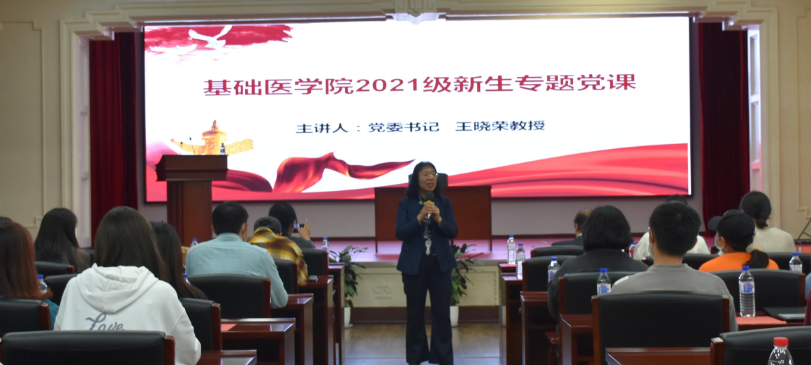 党委书记王晓荣教授在学院报告厅为2021级全体新生讲党课暨专题思政课。