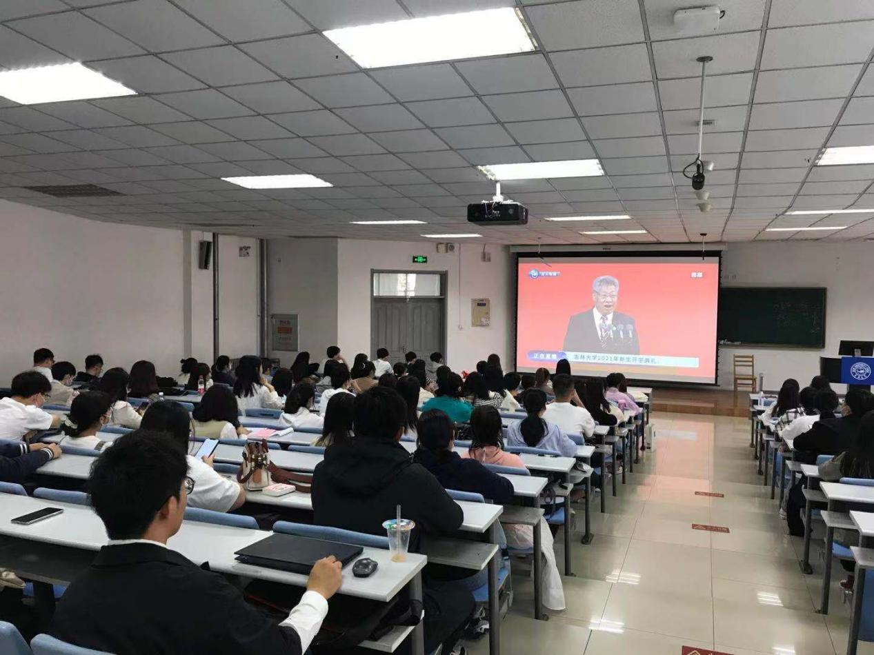 典礼在庄严肃穆的国歌中拉开序幕。张希校长发表致辞,强调 “求实创新、励志图强”的吉大校训与红色革命精神、白求恩精神、黄大年精神、抗疫精神等共同汇聚成了吉大的精神依托和力量源泉,实现未来的最好方法是创造未来,祝愿同学们在吉大校园里书写自己的青春诗篇,留下值得回味的美好记忆,始终铭记今日之理想与志向,培养建设人类命运共同体所需的素质和能力,努力成为合格的社会主义建设者和接班人。学生代表发言表示要赓续吉大基因、砥砺吉大修为、传承吉大精神,作有传承、有担当、有情怀的吉大人。教师代表以唐敖庆教授、黄大年教授的事迹为例,并从自身对“天道酬勤”的三层体会出发,鼓励同学们要厚积薄发,有勤于积累的耐心;要自强不息,向着既定目标坚定前行;要耕耘不辍,向着更高目标继续前行。