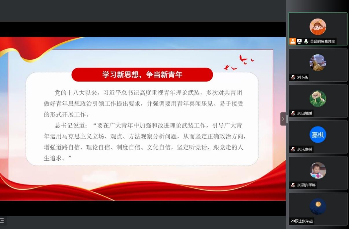 2020级硕士团支部在线上开展了“疫情防控,与我同行”主题团日活动。学院团委负责人、研究生辅导员孙佳钰老师以及2020级硕士全体团员参加,活动由2020级硕士团支书吴颖主持。