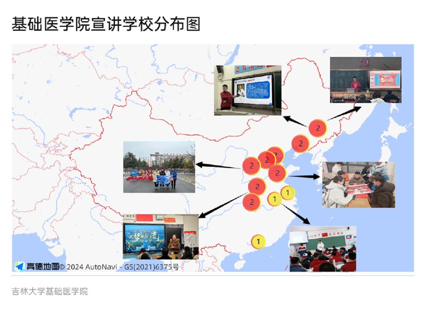 宣讲团由24位具有良好的人际沟通能力和表达能力的同学组成,实现了中心校区-新民校区双校区联合,同学们自发组成22个队伍,与其他学院的校友一同返回高中母校,通过线下宣讲答疑、线上线下联动、公众平台展播等形式,积极向五湖四海的同学们讲好吉大故事,传播好吉大声音,努力让更多优秀的同学认识吉大、了解吉大、情定于吉大。