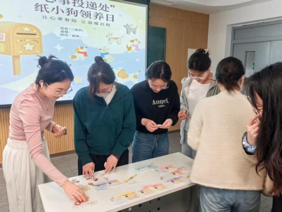 的同学们在“小狗卡片------情绪交换实验室”中开启了一场治愈心灵的奇妙旅程!在这里,他们用彩色卡片写下真心话,领养属于自己的“心灵小狗”,让纸片小狗成为自己独一无二的“情感寄托”,分享快乐,告别烦恼,安全感满满!