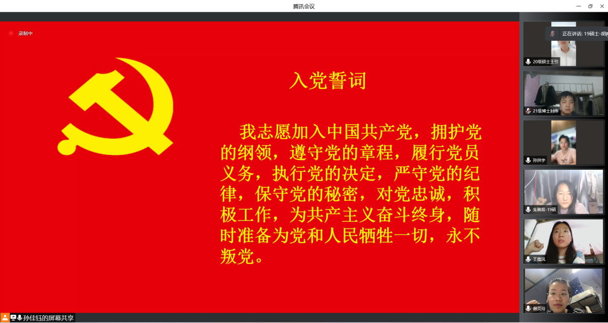 研究生党支部举办“同心协力·共克时艰”主题党日活动,党委副书记曹国丽和全体研究生党员通过线上方式参加本次活动,活动由研究生辅导员孙佳钰主持。