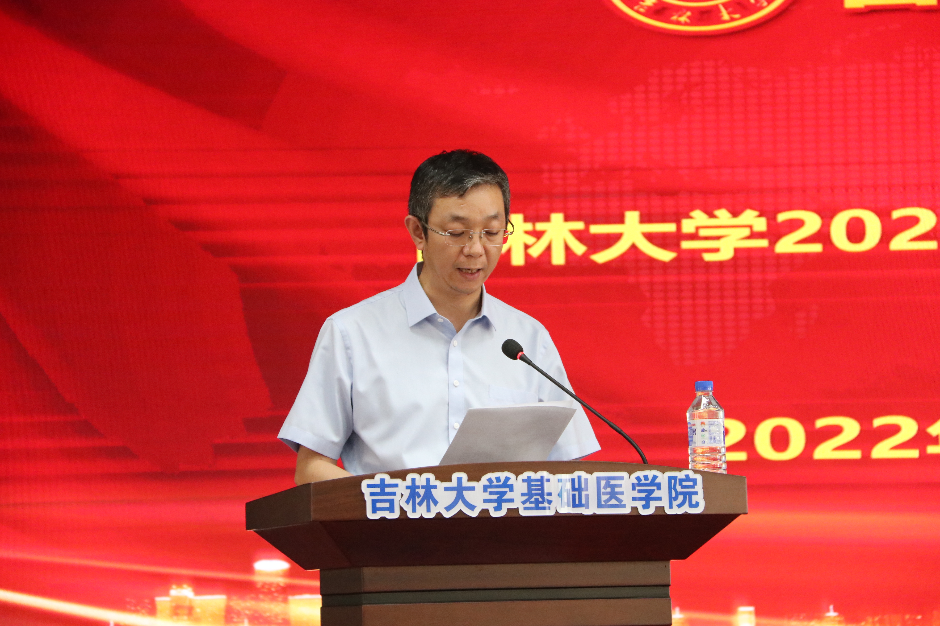 最后,王放院长做总结讲话。值此教师节和中秋佳节之际,他首先代表学院领导班子向学院全体师生致以诚挚的问候。王放院长表示,2022年是不平凡的一年,省内两次突发疫情,校园两次封闭管理,全院师生付出了巨大的努力,保证了学院的安全稳定,再次感谢在疫情期间坚守在学院抗疫战场上的每一位教职工。在二十大到来之际,学院号召全体师生以饱满的斗志,刻苦学习,继承和发扬基础先贤们的拼搏精神和优秀教师们的锐意进取,以优异成绩迎接党的二十大胜利召开。