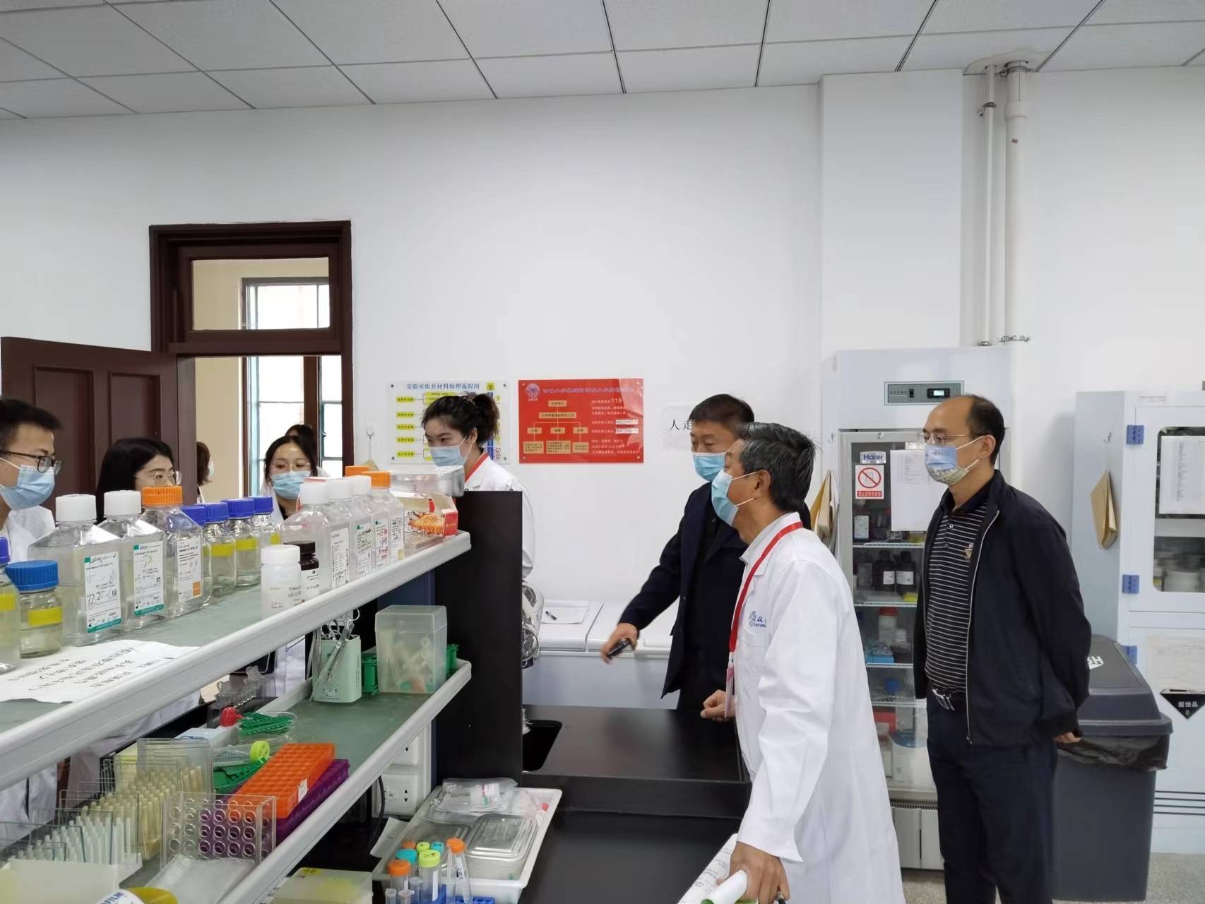 对实验室生物安全、危险化学品进行安全检查工作。孙巍、陈龙副院长陪同检查。