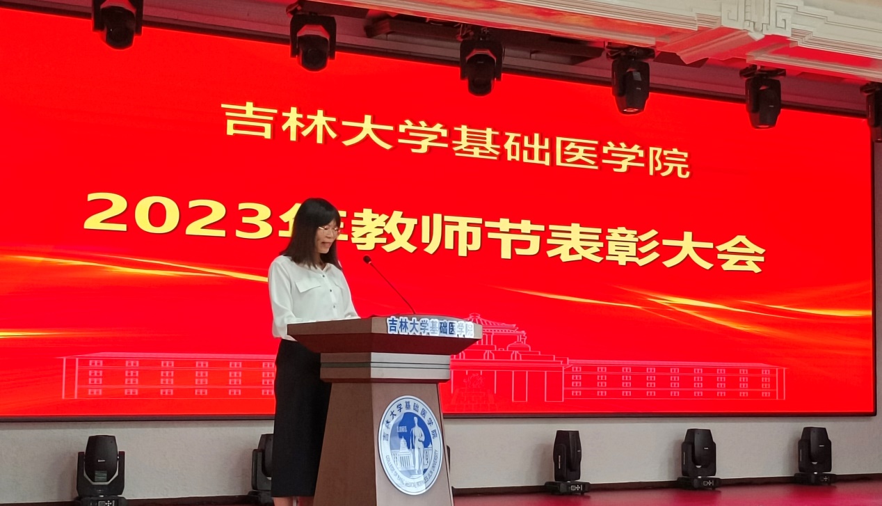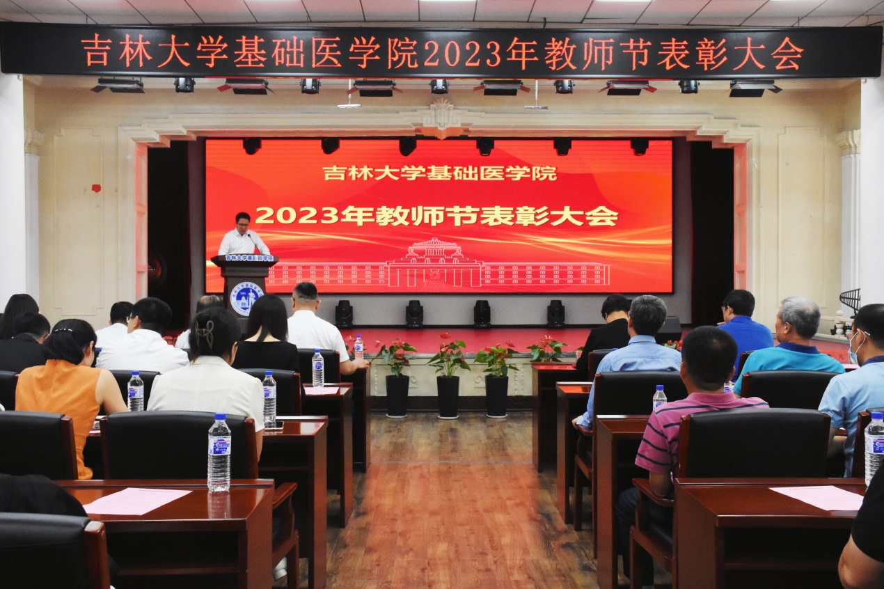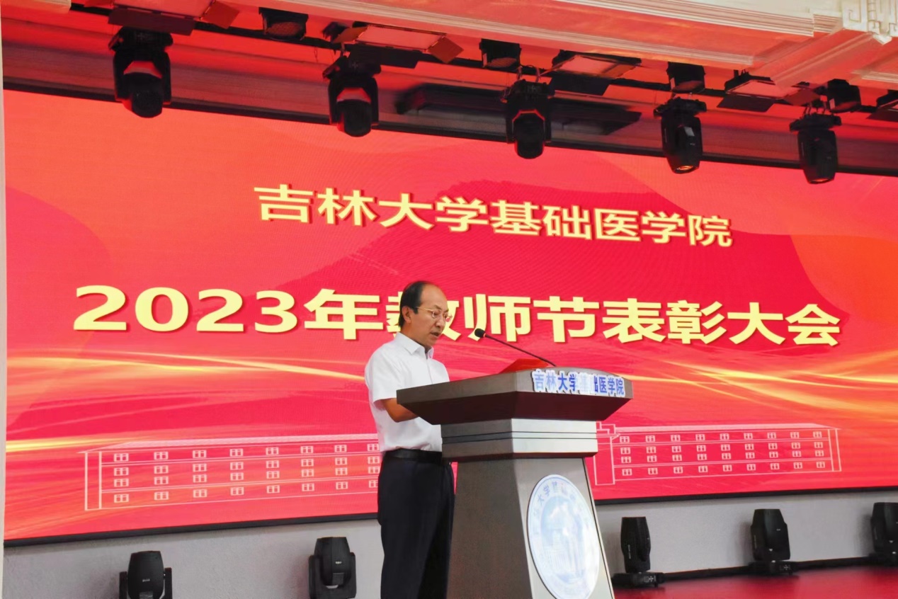 大会在雄壮的国歌声中拉开帷幕。李洪岩副院长宣读了《关于表彰2022—2023年度优秀教师、优秀教师团队等的决定》。学院决定授予李玉林、于永利、李凡、孙连坤、陈霞5名教师“特殊贡献奖”;李一雷、王放2名教师“师德先进个人”荣誉称号;全成实等60名教师“优秀教师”荣誉称号;病理学系、组织学与胚胎学系2个团队“优秀教师团队”荣誉称号;赵航、王博2名教师“管理辅助先进个人”荣誉称号;李平亚、陈维佳2人“特别感谢奖”。