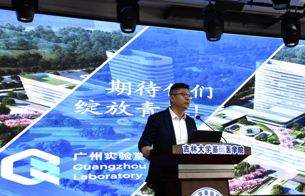 宣讲会第一项由刘海岩副院长主持。首先,广州国家实验室主任助理、特聘研究员、广州医科大学呼吸疾病全国重点实验室主任赵金存研究员从实验室基本情况、科研成果、体制机制创新探索三方面对广州实验室展开介绍,重点说明了广州实验室是呼吸系统疾病与防控领域的新型科研事业单位,是本领域的核心战略科技力量,并着重介绍了实验室在开展基础与应用基础研究、解决重大疾病与防控领域的科学和技术难题中取得的科研成果;同时为参会师生介绍了实验室在组建综合创新研究平台和设施集群中的新探索,强调了未来实验室将成为具有全球影响力的突破型、引领型、平台型为一体的大型综合性研究基地和原始创新策源地。
