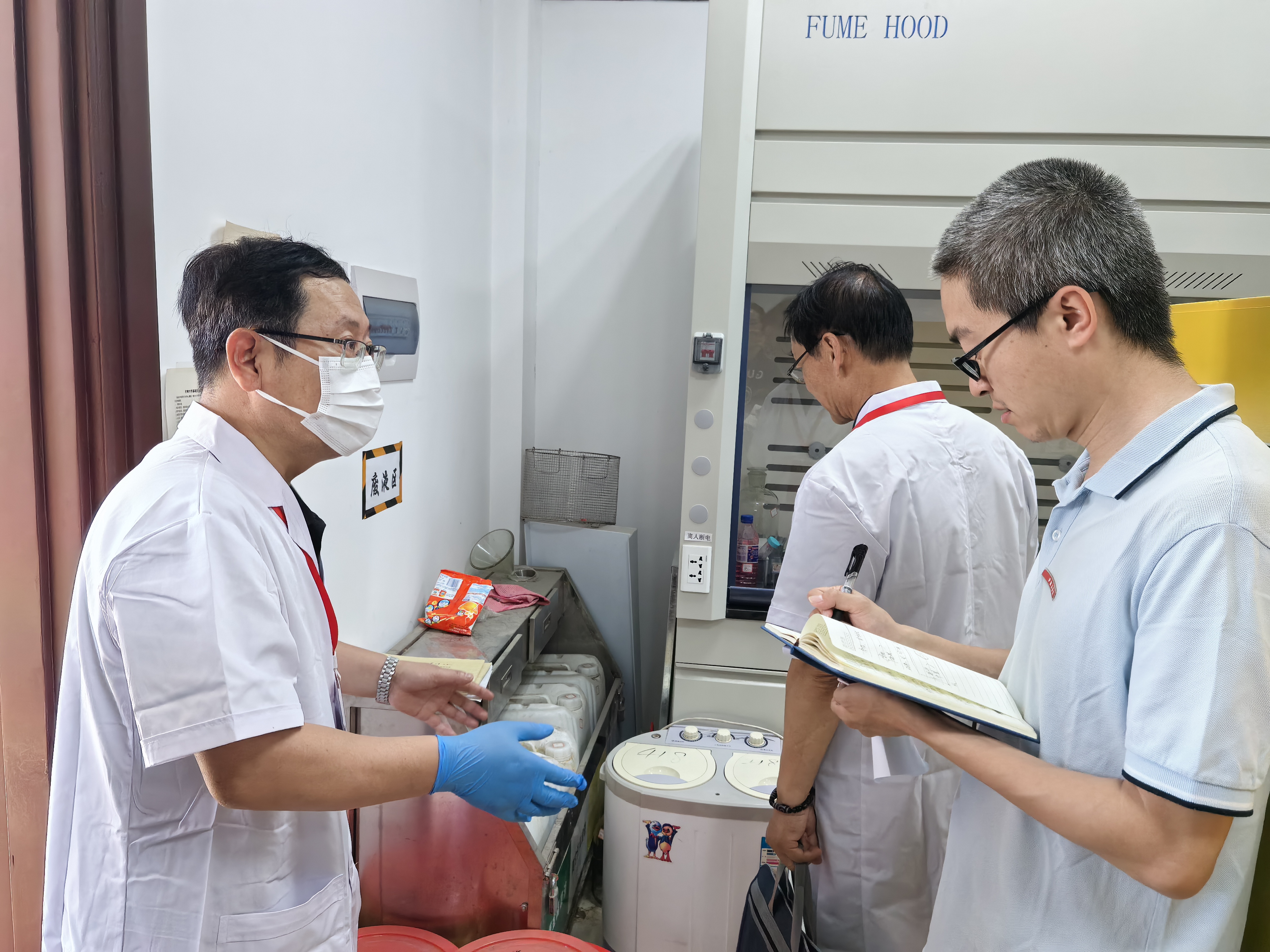 专家组一行先后对学院解剖学系、组织与胚胎学系、药理学系等科研实验室进行了全面检查,实地查看包括实验室危化品出入库管理、使用情况,实验废弃物处置等情况,重点查看了实验室危化品管理的相关工作情况。