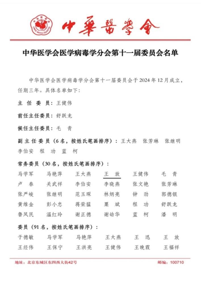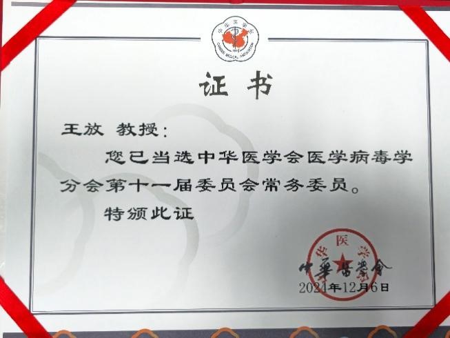 2024年12月6日,中华医学会医学病毒学分会换届选举会议在广东省广州市召开,日本性爱 病原生物学系王放教授当选中华医学会医学病毒学分会第十一届委员会常务委员。