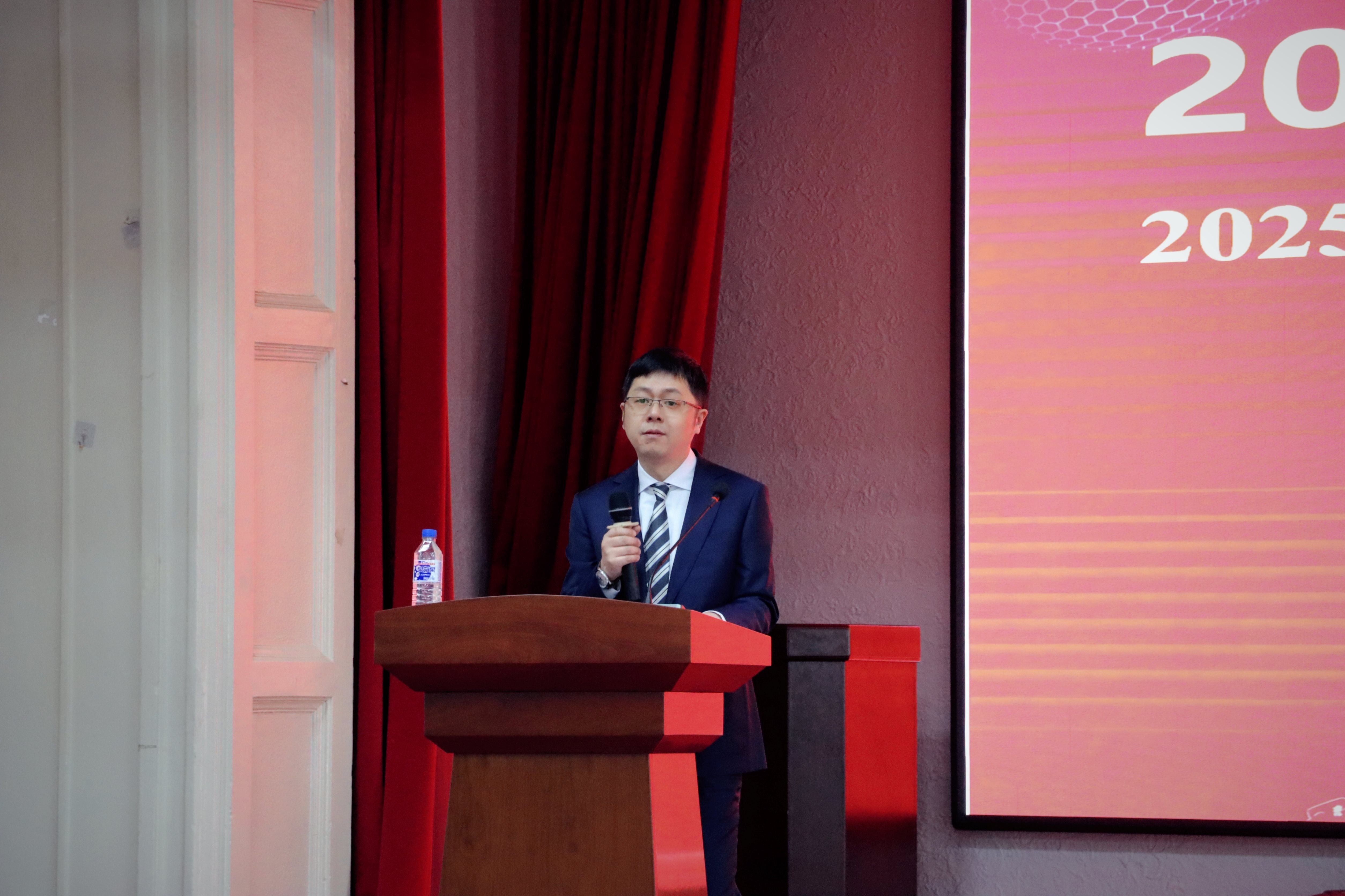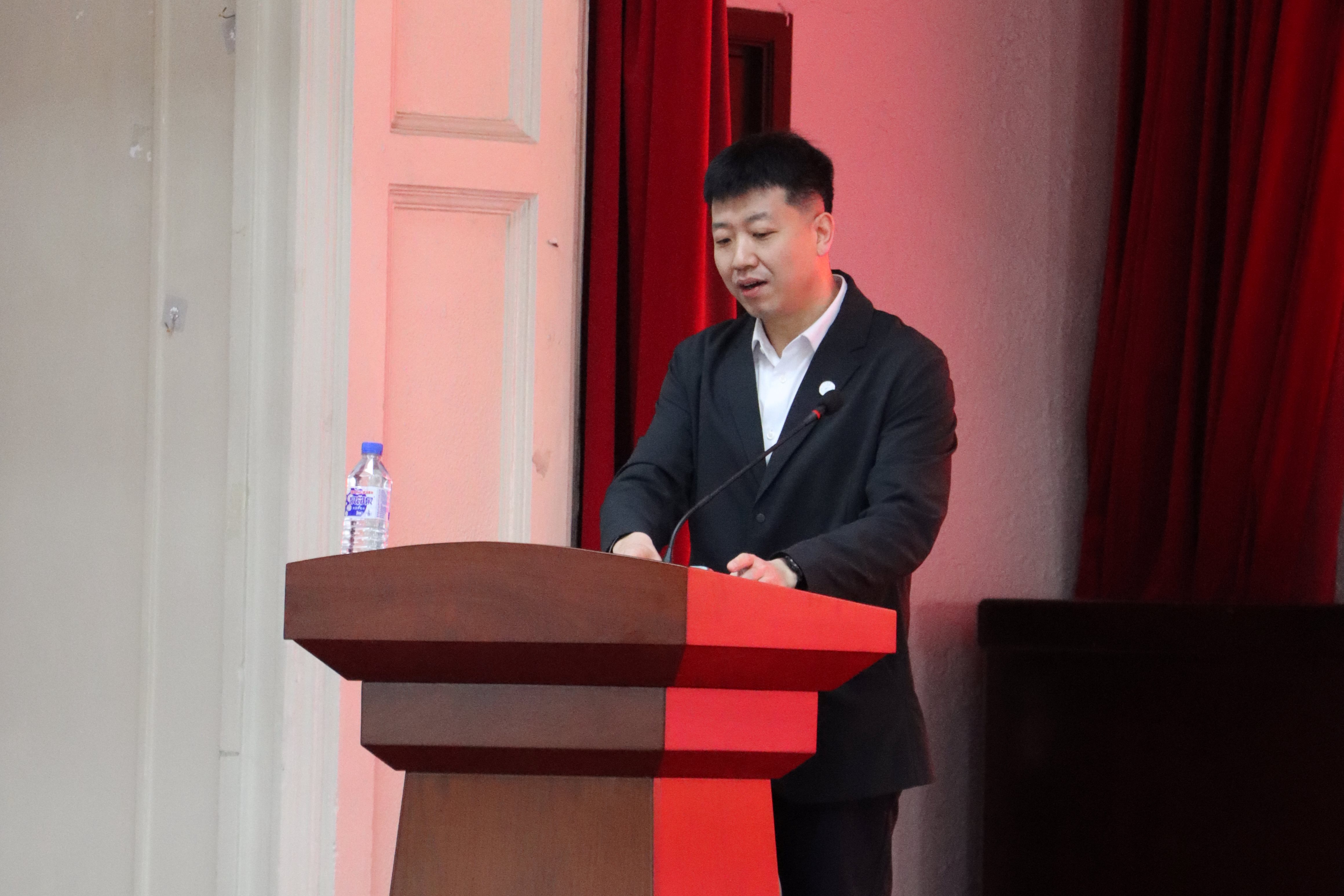 致辞。他对新生们的到来表示热烈欢迎,并详细介绍了国际教育学院为留学生们提供的各项支持和服务,包括语言培训、文化交流活动、素质拓展训练等,鼓励新生们充分利用学校的资源,努力学习,积极融入校园生活。