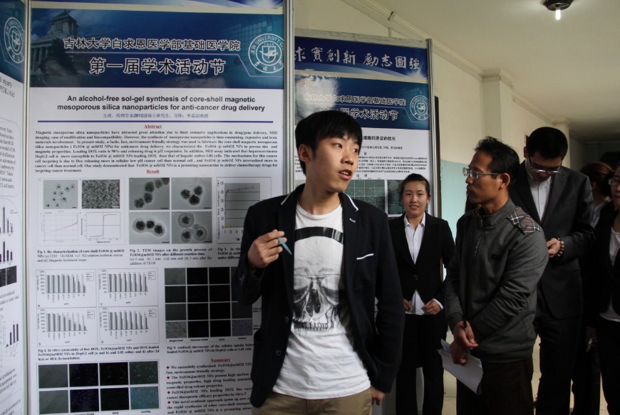 在作学术报告期间,学院遴选出博士生40人、硕士生40人进行了研究生学术成果展示活动,展出学院、学系、导师和研究生的教学与科研等学术成果近90面展板。研究生所展示的学术内容都是在导师指导下,师生历经无数次实验,付出辛勤汗水的科研成果。展示活动设置了研究生介绍展示、专家评议、师生间问答等环节,老师提问精到、评议细致,学生应答严谨、表述流畅,问答间擦撞灵感火花不断……