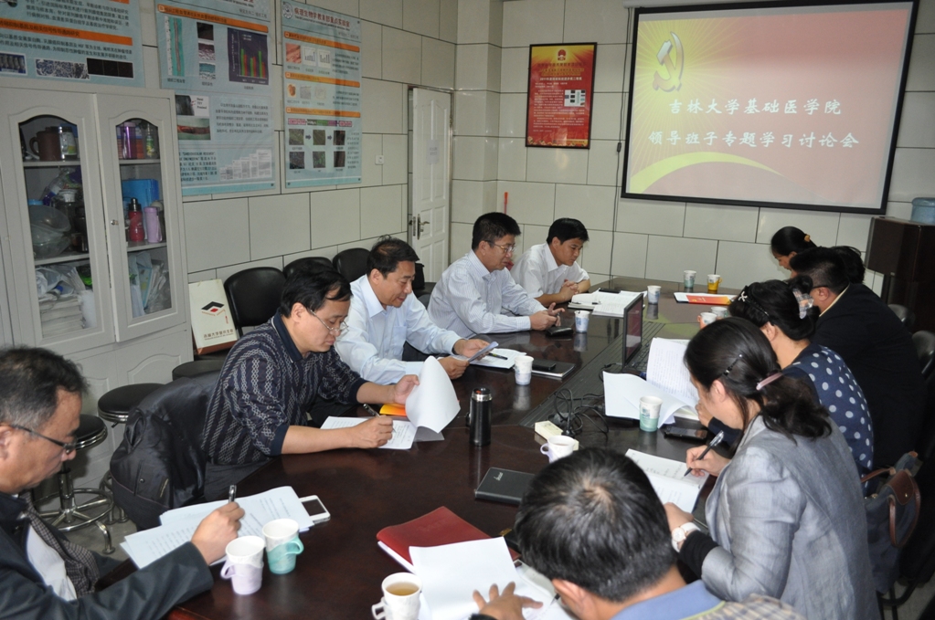 在病理学系三楼会议室召开领导班子专题学习讨论会。校教育实践活动联系人、副校长王冠军,医学部第三督导组组长、医学部党工委副书记兼纪委书记屈英和,学院院长孙连坤等领导班子全体成员和学生思想政治工作专员韩丽华一起参加了讨论会。讨论会由学院党委书记孙赵华主持。
