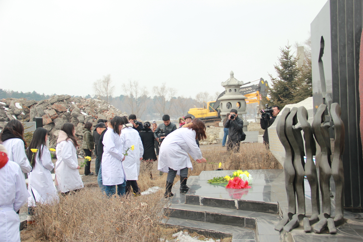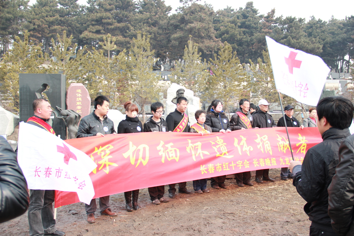 白求恩医学院与长春市红十字会、长春晚报、九龙源社会公墓等单位一道在九龙源社会公墓纪念碑联合举办了“大爱无声,精神永存”的悼念活动。长春市红十字会常务副会长王大雷、《长春晚报》副总编刘立志、新闻部主任刘连宇、九龙源社会公墓经理张仁贵、副经理肖宝娟、白求恩医学院副院长陈霞、辅导员秦雪参加了此次活动。参加活动的还有遗体捐献志愿者、遗体捐献者亲属、九龙源社会公墓工作人员以及白求恩医学院40名学生党员。本次活动由市红十字会秘书长李锋华主持。