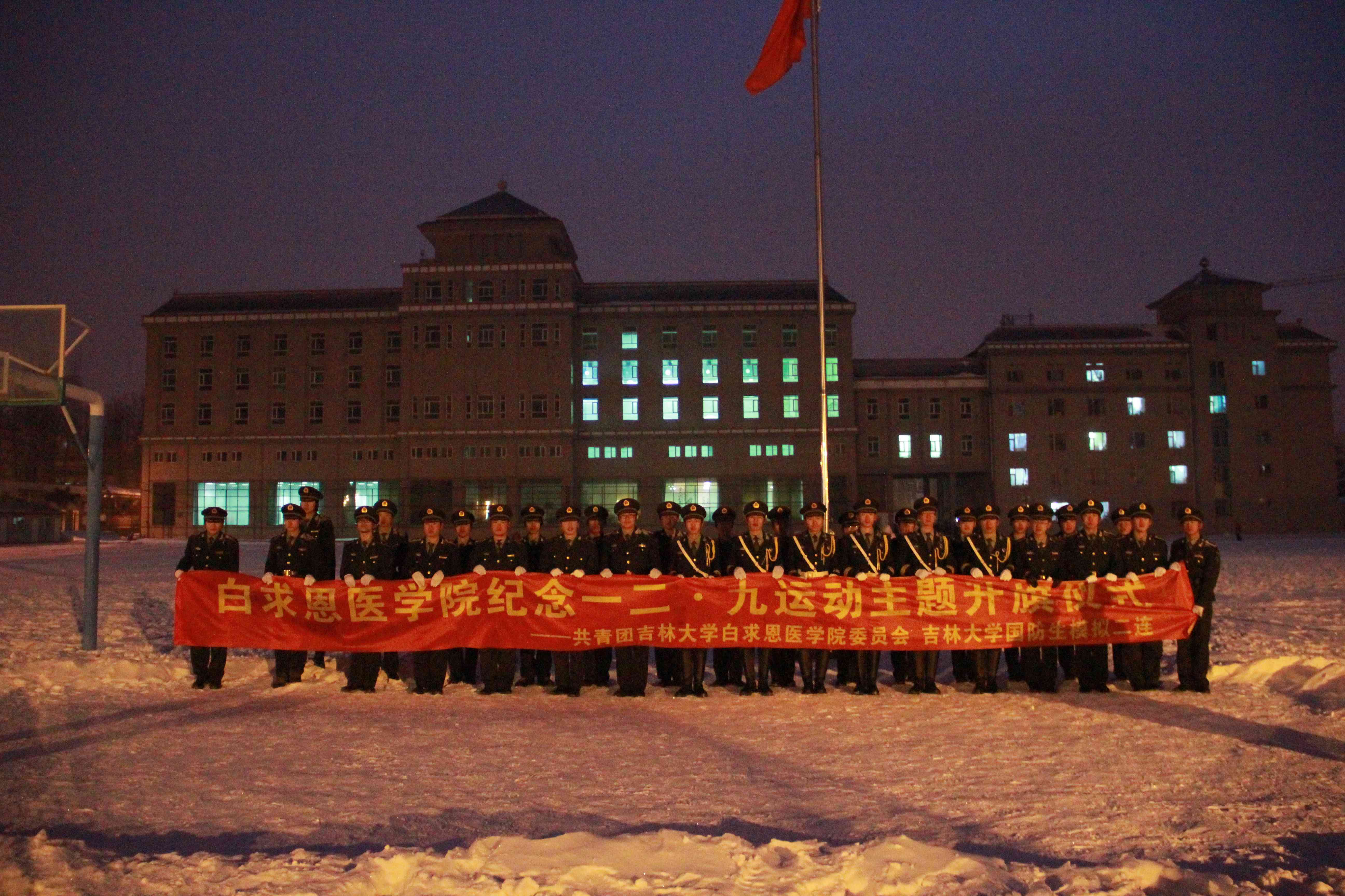 继前辈遗志,续民族正气;怀青年热血,书华夏篇章。12月9日早6时,白求恩医学院在新民校区体育场举行了纪念一二·九运动77周年主题升旗仪式。白求恩医学院辅导员老师魏宇航、全体国防生及白求恩医学院新民校区学生参加了升旗仪式。