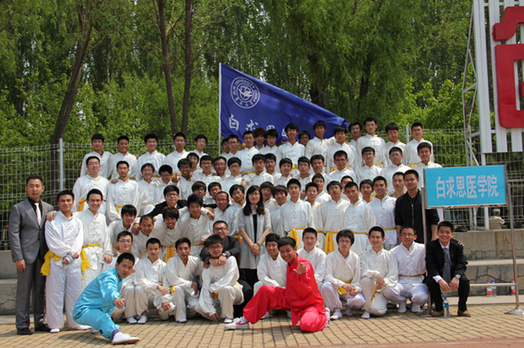 白求恩医学院代表队由来自2010级五年制以及2011级五年制的66名学生组成,由严宇指挥,隋喆、毛孝斌领打。比赛过程中,白求恩医学院方队服装统一、队列整齐、声音响亮、出拳有力,一招一式中尽显白院学子青春风采,“强我武魂,健我体魄,兴我吉大,耀我中华”的口号更喊出吉大学子的昂扬斗志。