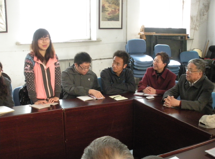 座谈会上,老前辈们表现出极高的热情,不仅亲切地询问同学们的生活情况与学习情况,还细心地回答了同学们提出的各种问题。钱东春首先表达了自己的激动之情,并表示与学生党支部对接一直是他们这些老党员的心愿。座谈中,王兆安等老干部讲起了原白求恩医科大学的光荣传统——“艰苦奋斗、无私奉献、精益求精”,结合胡锦涛总书记纪念中国共产主义青年团成立九十周年大会上的重要讲话,王兆安鼓励同学们要继承和发扬白求恩精神,不断端正思想,提高党性修养,刻苦钻研,奉献社会。另外,针对学生党员马婉璐等人对于医学院校排名与当前紧张的医患关系的困惑,王兆安、刘振禄等老干部例举了中国工程院院士郎景和、北京协和医院院长赵玉沛等一批原白求恩医科大学的优秀毕业生,并结合自己多年的教学管理经验,告诫同学们要头脑清醒,不要被社会上的杂音所影响,专心学习,为自己所热爱的事业贡献力量。
