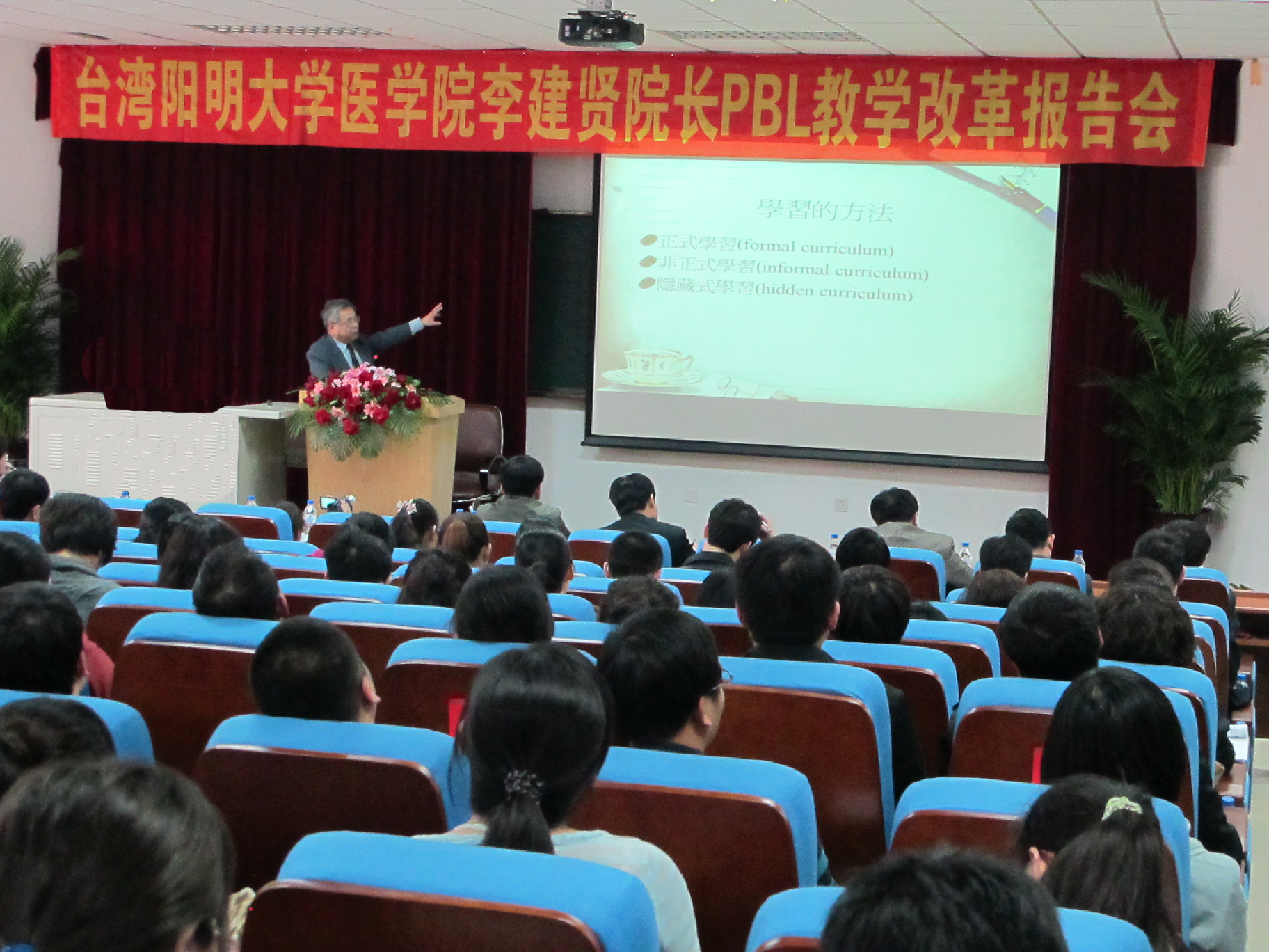 医学教育现状以及所面临医学教育改革的重要性和紧迫性,提出借鉴国内外医学教育成功经验,转变教学观念、理念,改变医学教育模式,全面深化医学教育改革。李建贤详细回顾了阳明大学10年来开展PBL教学改革的曲折历程与教改经验,阐明了新时代学习的核心观念。他从“成人学习的六大特色”“大学教育的挑战”“新时代学习的核心观念”等方面阐述了阳明大学尝试的各种教学方式与学习效果,并现场互动,与师生一起深入探讨医学教学模式。