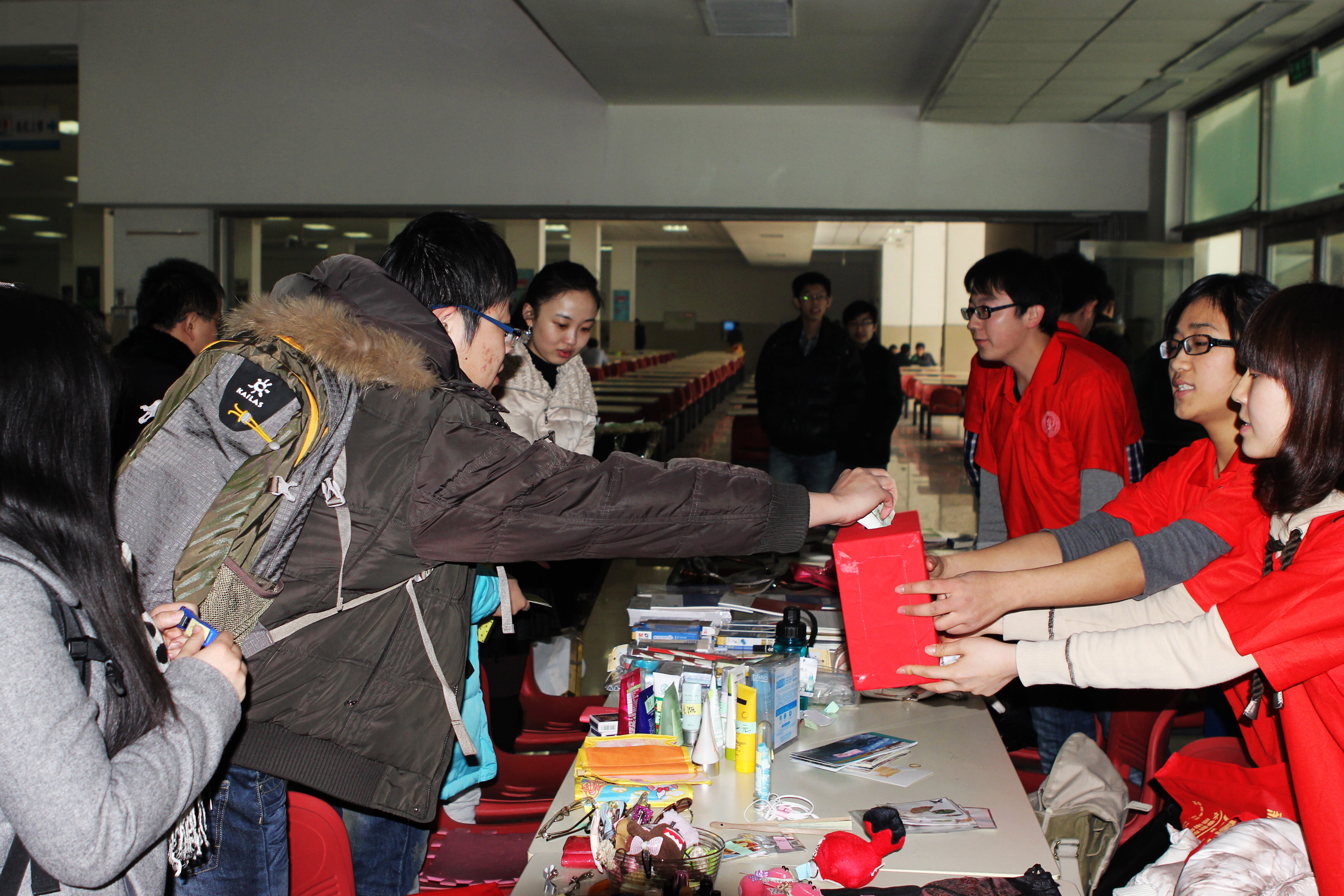 前卫南区新食堂一楼进行了爱心义卖活动。义卖的物品包括同学们捐出的自己的书本、衣服及班级干部从批发市场买回的学习用品。3月9日,团委书记夏燕来、辅导员魏宇航及701002团支部成员来到了长春市儿童福利院,向福利院捐赠出义卖的全部所得。同时,701001团支部及701105团支部也展开了义卖活动。701006团支部则兵分三路,分别来到长春市朝阳区晚祥宁敬老院看望孤寡老人,来到长春市第二十六中学和那里的同学们一起学习雷锋,来到同志街附近宣传普及雷锋精神。701104团支部来到日本性爱