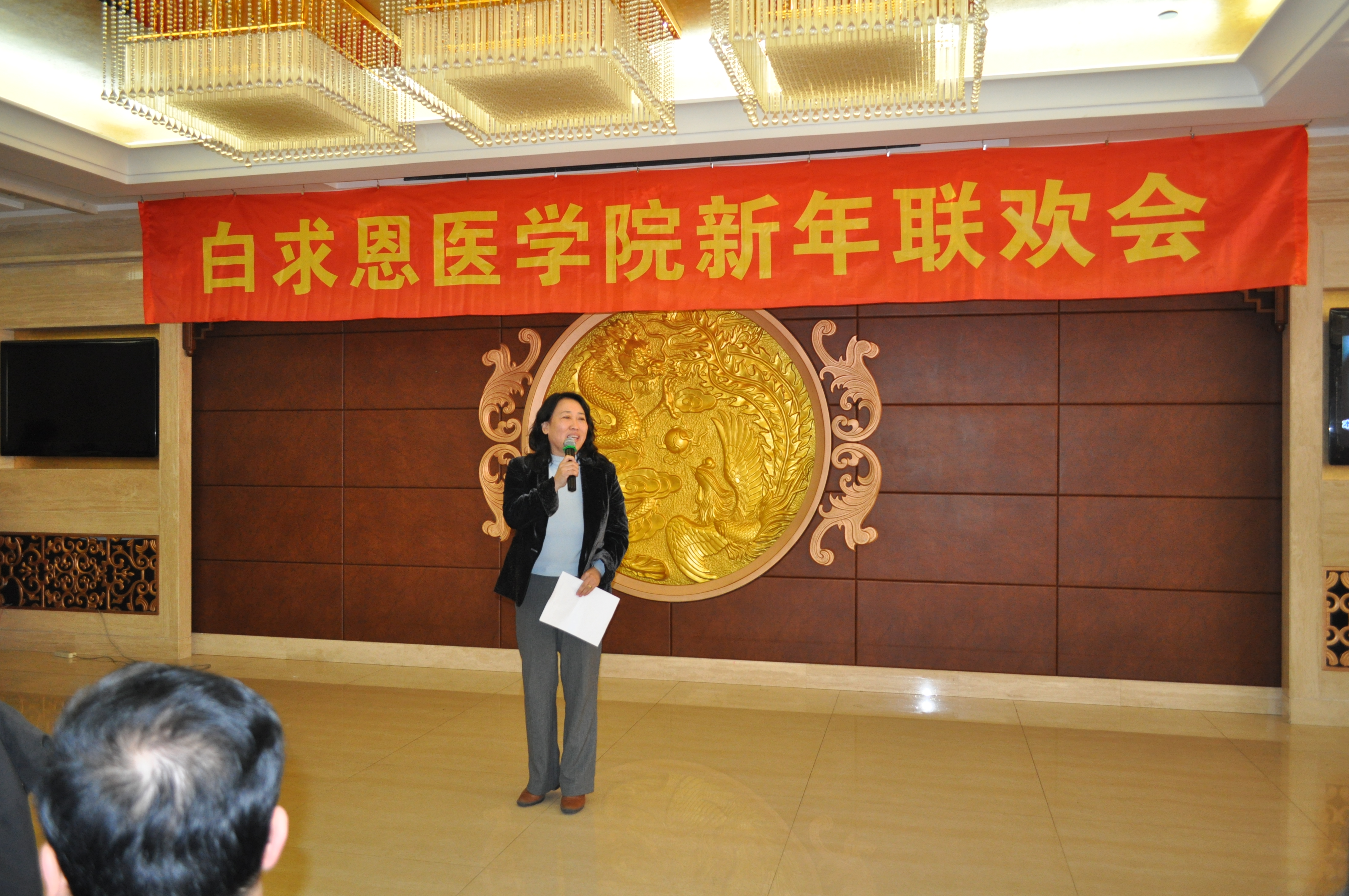 校长助理、白求恩医学部常务副学部长兼白求恩医学院院长李凡、白求恩医学院党委书记屈英和等全体院领导,新民校区事务专员李楠及新民校区各职能部门的领导和学院教职工、离退休老领导、老教师等一起参加了联欢会。晚会由学院学生办公室主任吴剑锋和生物化学教研室副教授张纪周主持。