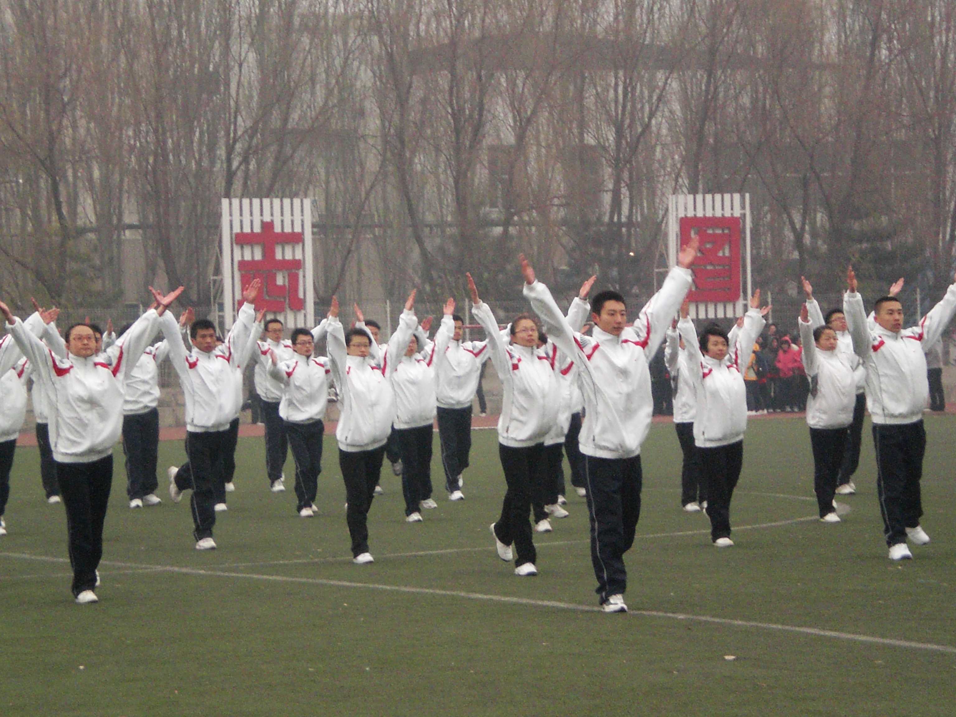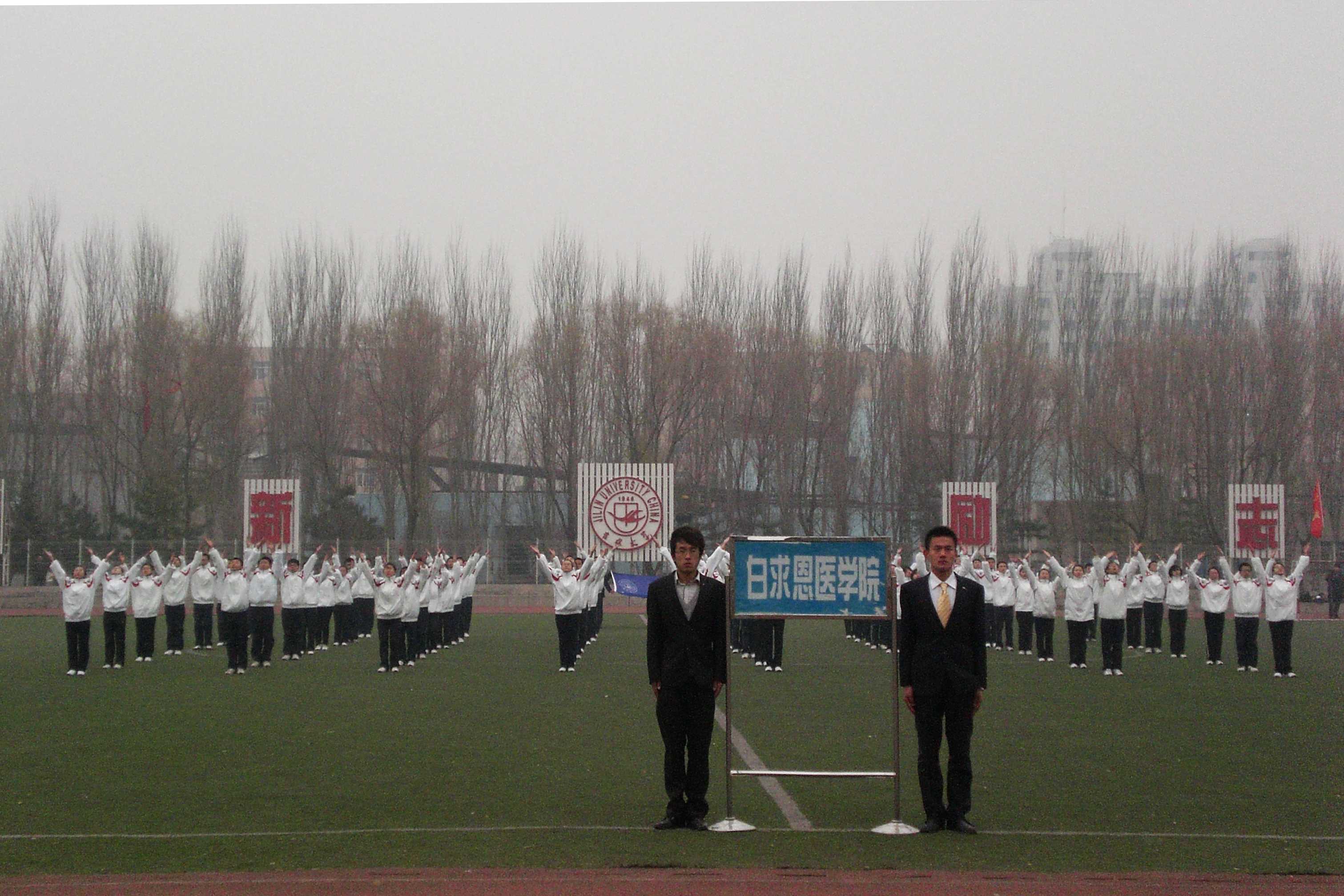 尽管天气寒冷,但这并未影响白求恩医学院同学为学院争光的热情与信心。他们穿着统一的运动服,迈着整齐的步伐,喊着响亮的口号入场;表演中,动作标准而整齐,轻盈而充满活力,为本场比赛增添一道亮丽的风景。最后,凭借精彩的表演,白求恩医学院代表队获得一等奖。