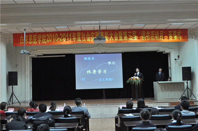10月10日晚,白求恩医学院2010—2011年度社会实践表彰大会暨第三届“读书月活动”开幕式在基础楼二楼多功能学术报告厅举行。日本性爱