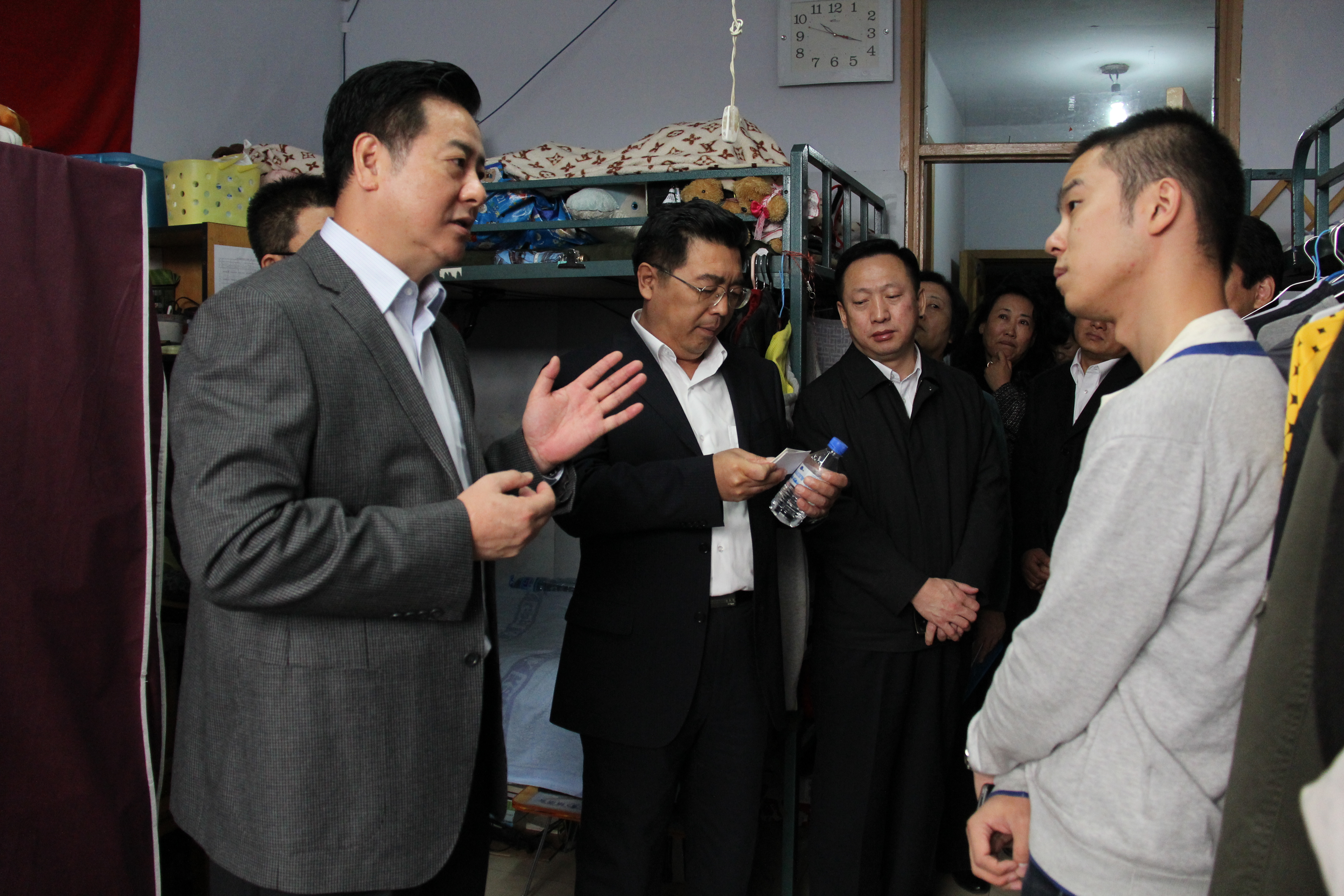 李校长视察期间,详细察看了学生宿舍情况,与学生进行亲切交流,听取学生意见和建议,同时鼓励学生要好好学习,早日成才。对师生提出的问题,李校长表示学校将尽全力解决。学院师生对于新校长来校不久,就来到学生宿舍视察,感受到李校长对学生学习、生活的切实关心,要为学生改善目前学习生活条件的心情。同时,学院师生表示在李校长的关心指导下,以积极的心态投入到工作和学习中,为学校、学院的快速和谐发展贡献力量。