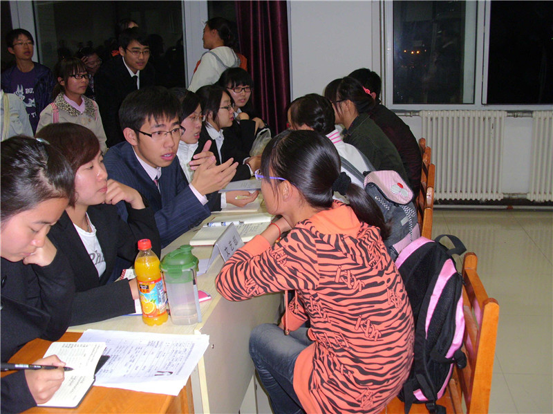9月20日晚,白求恩医学院团委学生会在中心校区李四光楼202、208教室举行纳新活动。团委、学生会在两个教室分别进行面试,历时两个半小时左右,过程中气氛火爆热闹、座无虚席,纳新活动秩序井然。本次纳新本着公平、公正的原则由团委学生会各个部门的部长、副部长面试,他们针对本部门的工作性质及面试者对所申报岗位的认识与设想进行了提问,并认真谨慎的筛选,从而吸纳更多的优秀人才进入团委学生会。据悉,最终结果将在近期公布。(学生记者:赵雪)