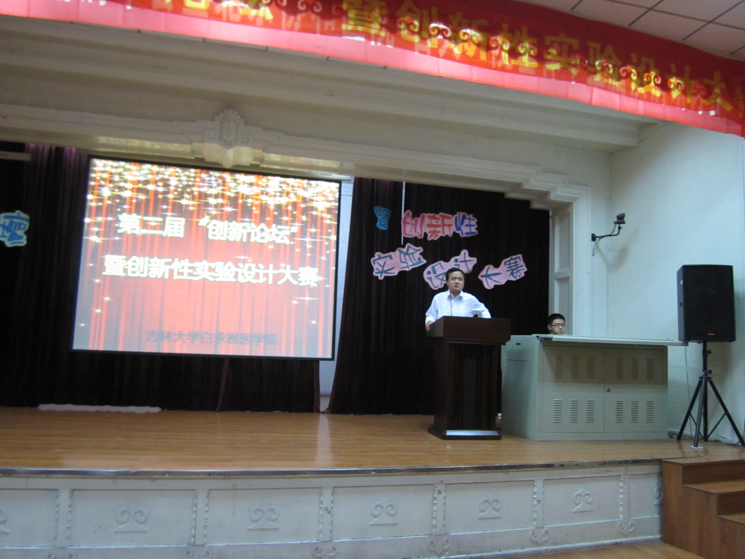 5月24日18时,白求恩医学院在新民校区基础楼二楼多功能学术报告厅举办了第二届创新论坛暨创新性实验设计大赛,大赛邀请了白求恩医学院常务副院长孙连坤教授,院长助理、实验中心主任陈霞教授,病原生物学系主任王丽教授,病理学系王琳教授出席并担任评委,学院团委书记夏燕来作为嘉宾参加了大赛。