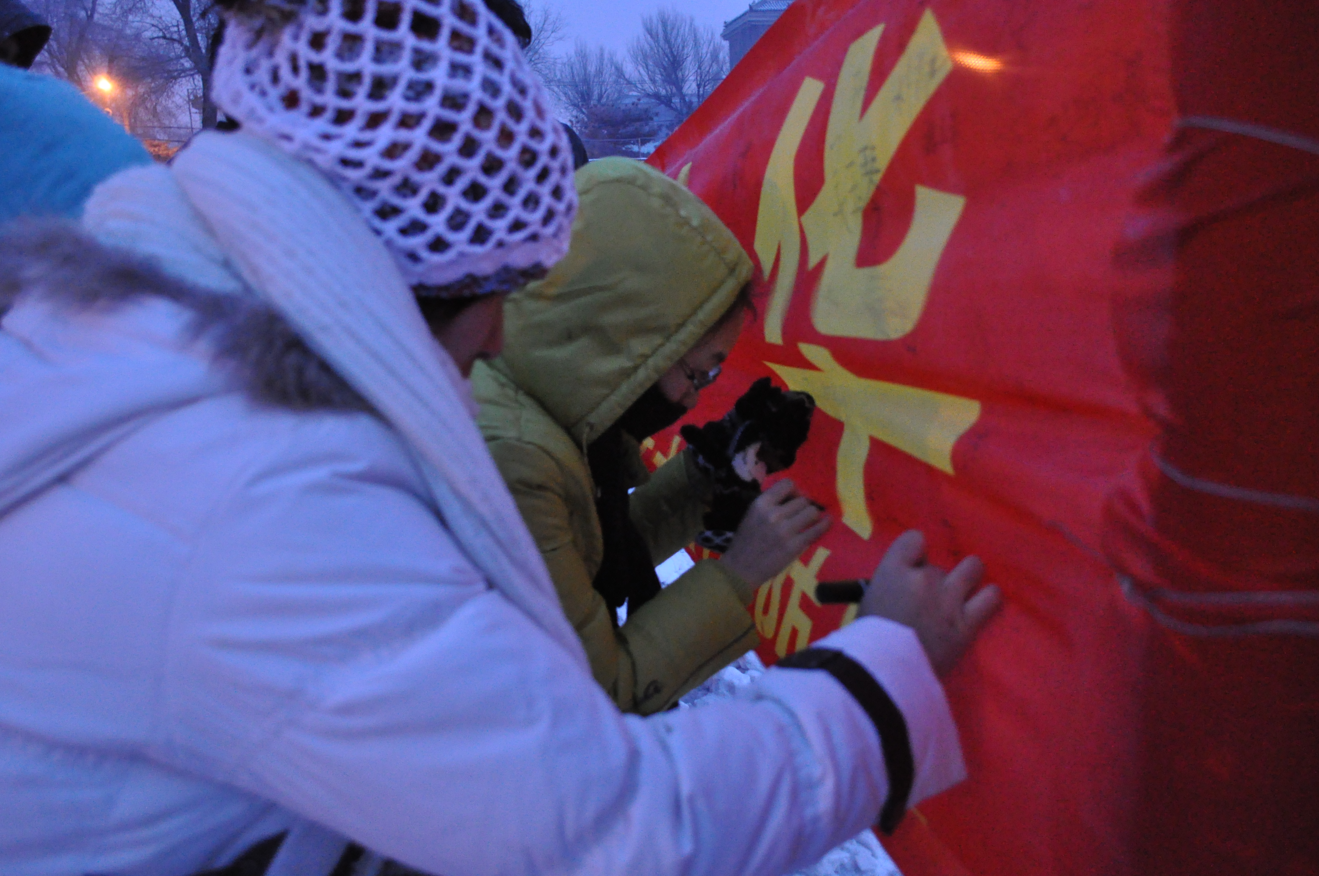 升旗仪式结束后,所有同学在写有“铭记历史,勿忘国耻,奋发图强,振兴中华”的横幅上进行了签名活动。