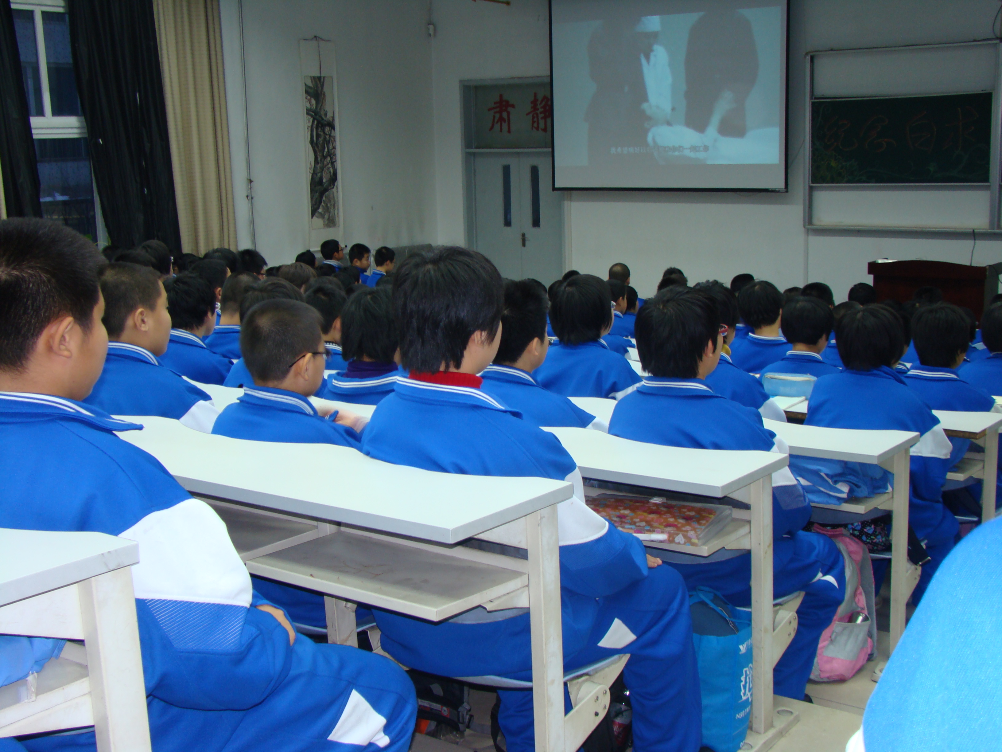 15时50分,在附属中学的宣讲会上,校长崔贞姬、团委负责人王老师及初中一年级的200余名学生到场与宣讲队员一起感受了白求恩在中国的工作历程,并一起观看了白求恩医学院学生自编自演的话剧《白求恩》的录像。王老师说,“从孩子们的认真态度中就可以看出,白求恩精神已经走进学生心里。”
