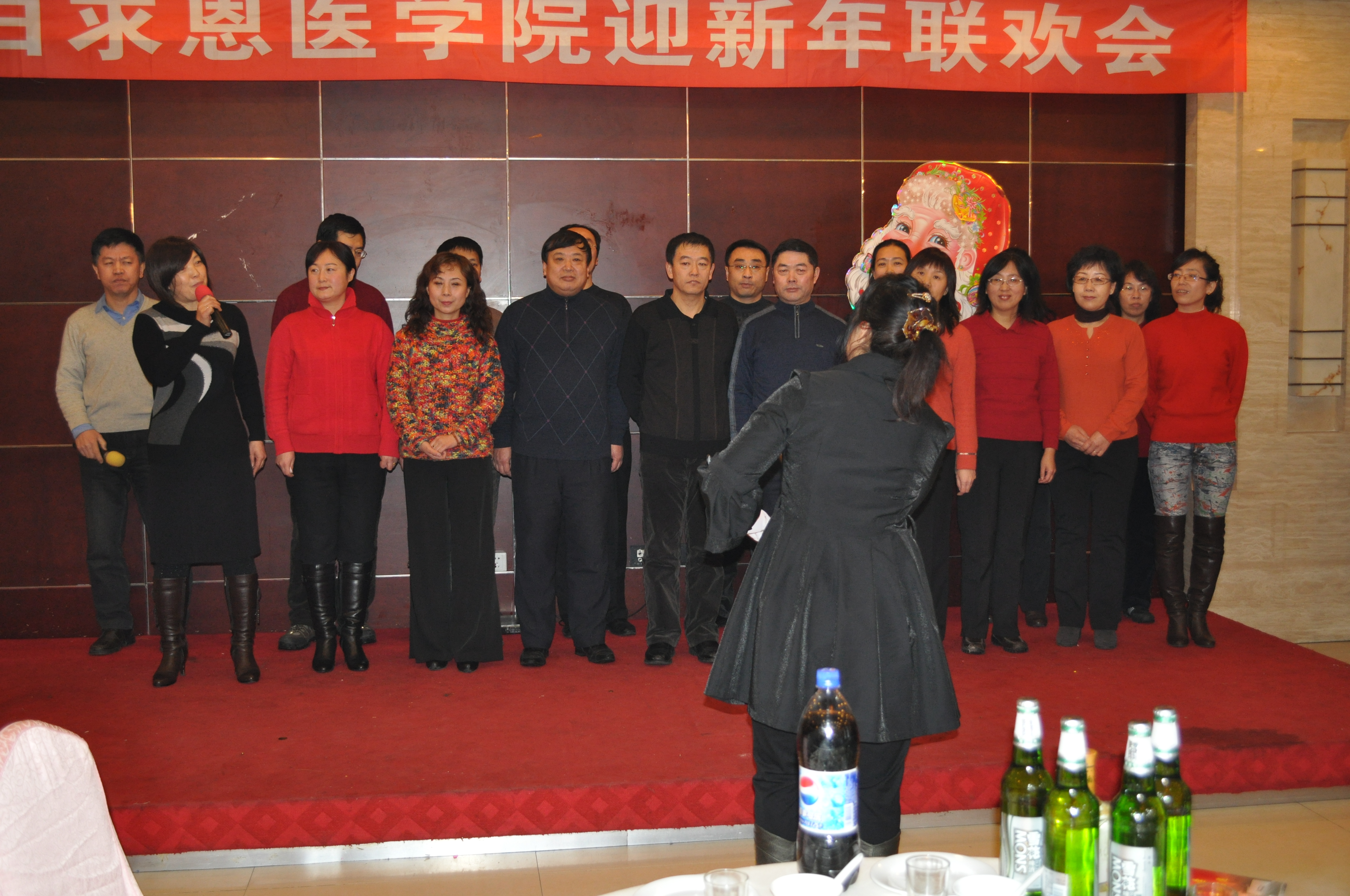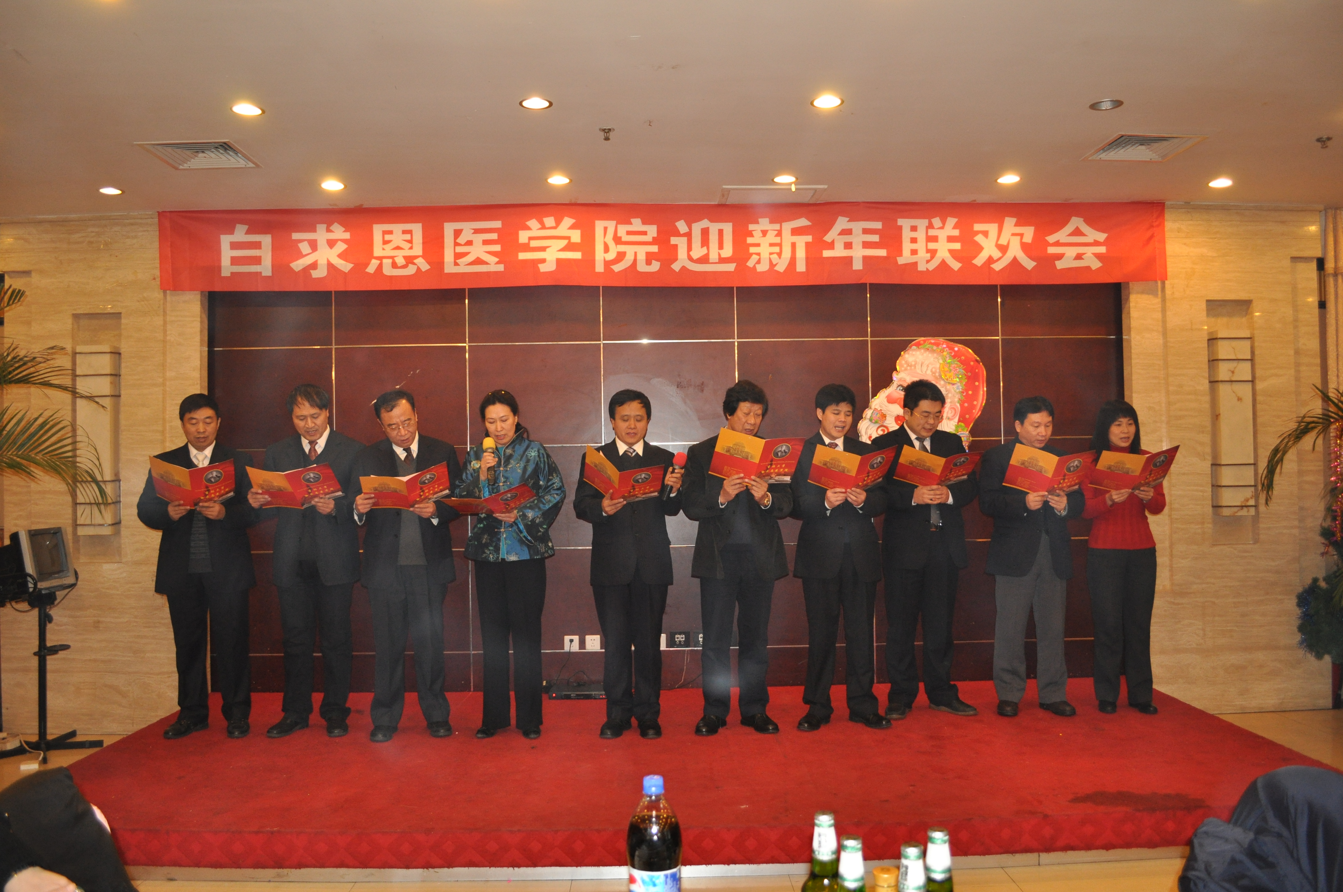 联欢会伊始,常务副校长兼白求恩医学院院长李玉林发表了热情洋溢的讲话。首先,他代表学校对白求恩医学院一年来的工作给予了充分的肯定,代表学院向全体教职员工及参会人员致以了节日的问候和美好的祝愿。同时,对学院2009年全年的工作进行了全面的盘点。
