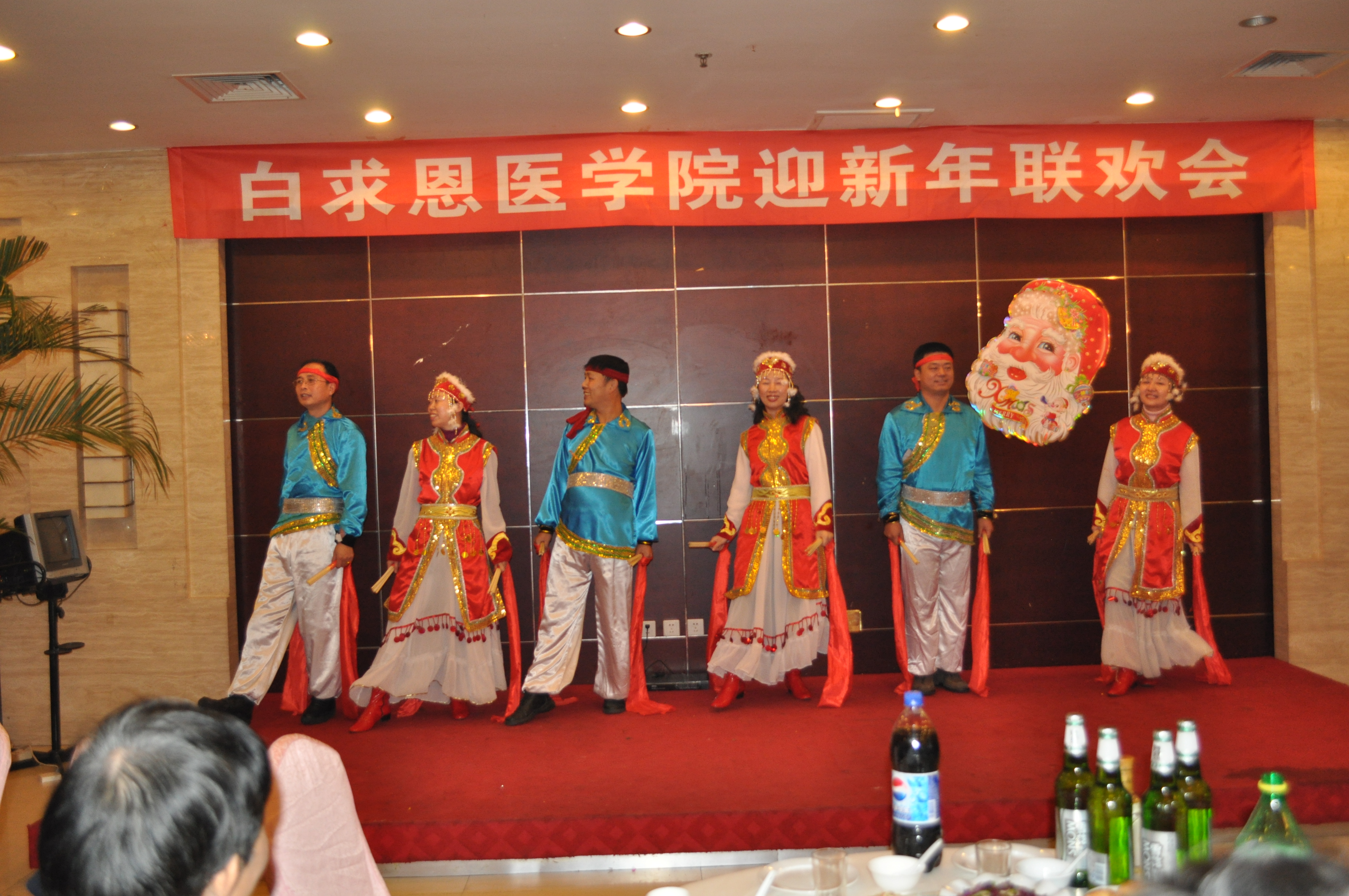 、对白求恩医学院的挚爱之意。随后,各学系、中心、教研室教职工先后带来女声独唱、印度独舞、蒙古舞、大合唱,博得了现场观众的热烈掌声,幸运抽奖换届更是掀起了联欢会一个又一个高潮。