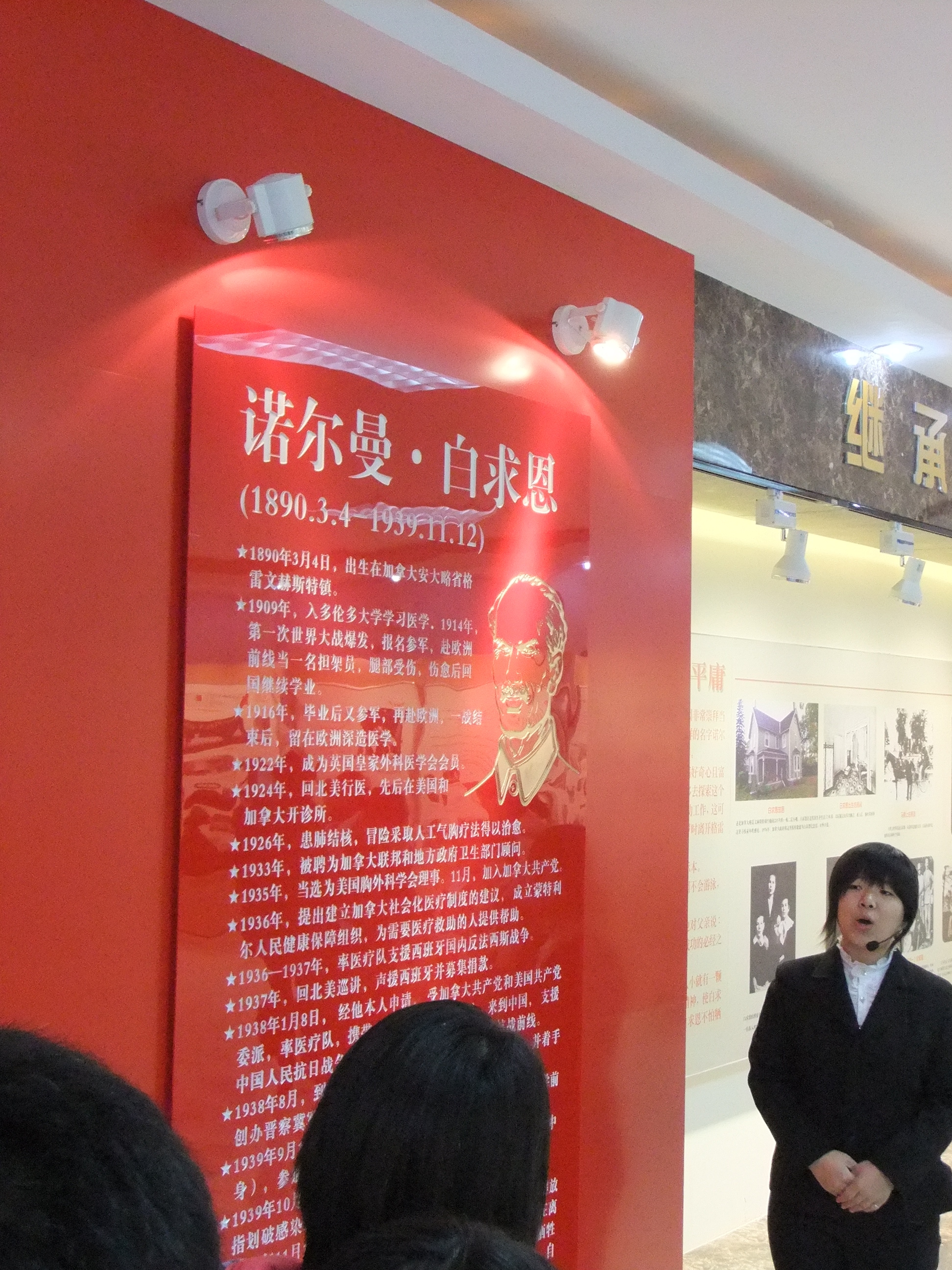 近半个小时的时间里,白求恩医学班的同学们在讲解员娓娓动听的声音当中,感受了70年前战火纷飞中诺尔曼·白求恩伟大的国际主义、共产主义精神;毫不利己、专门利人的无私奉献精神;对技术精益求精,对工作极端负责的精神;对人民、对同志极端热忱的精神……随后同学们又参观了日本性爱