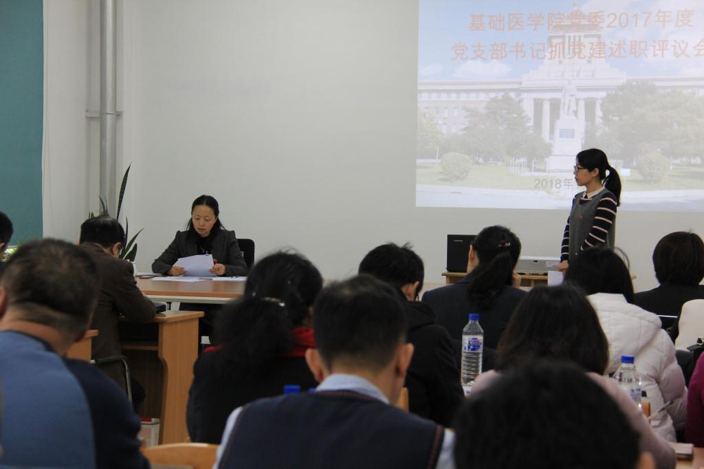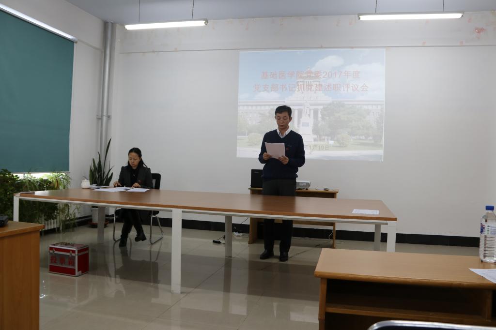 首先,参加述职的14个党支部书记围绕“做法成效”、“存在问题及原因”和“下一步工作打算”三个部分进行述职发言。学院党委书记郑爽进行了“一对一”点评,郑书记既肯定了各支部一年来取得的工作成绩,同时也指出了存在的问题,并就下一步如何改进和增强党建工作向各党支部提出了明确要求。