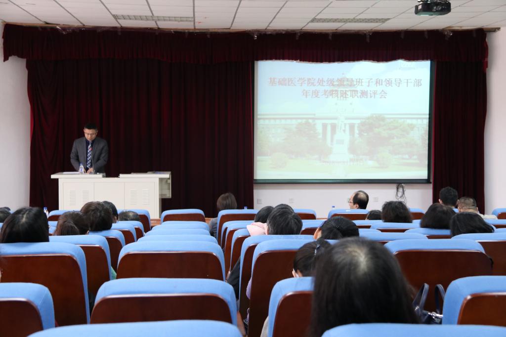 党委在新民校区第二教学楼2402召开处级领导班子和领导干部年度考核述职测评会。会议由学院党委书记郑爽主持,学院全体教职工和学生代表参加了会议。