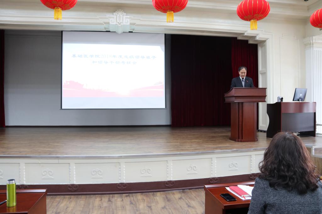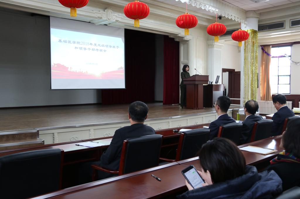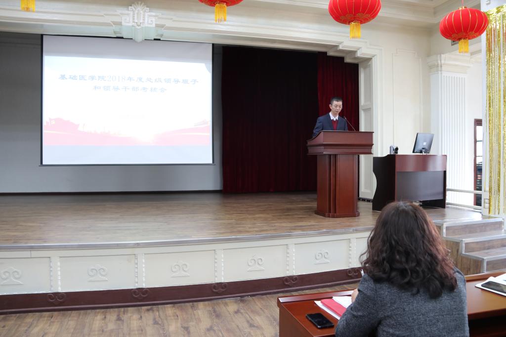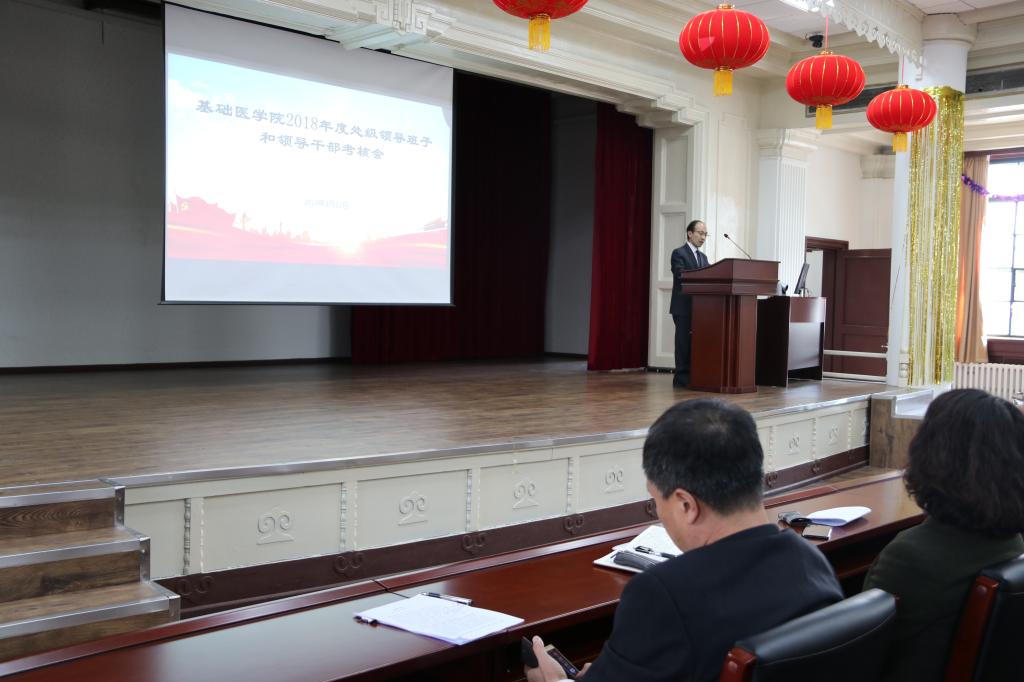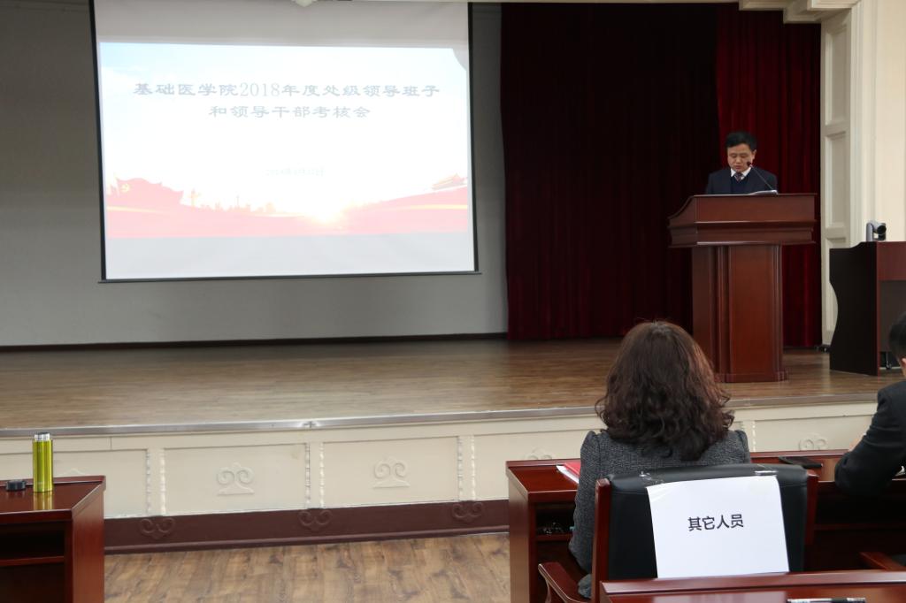 在基础二楼报告厅召开了2018年度领导班子和领导干部考核会,学院全体教职工和部分学生代表参加了本次会议,会议由学院党委书记郑爽主持。