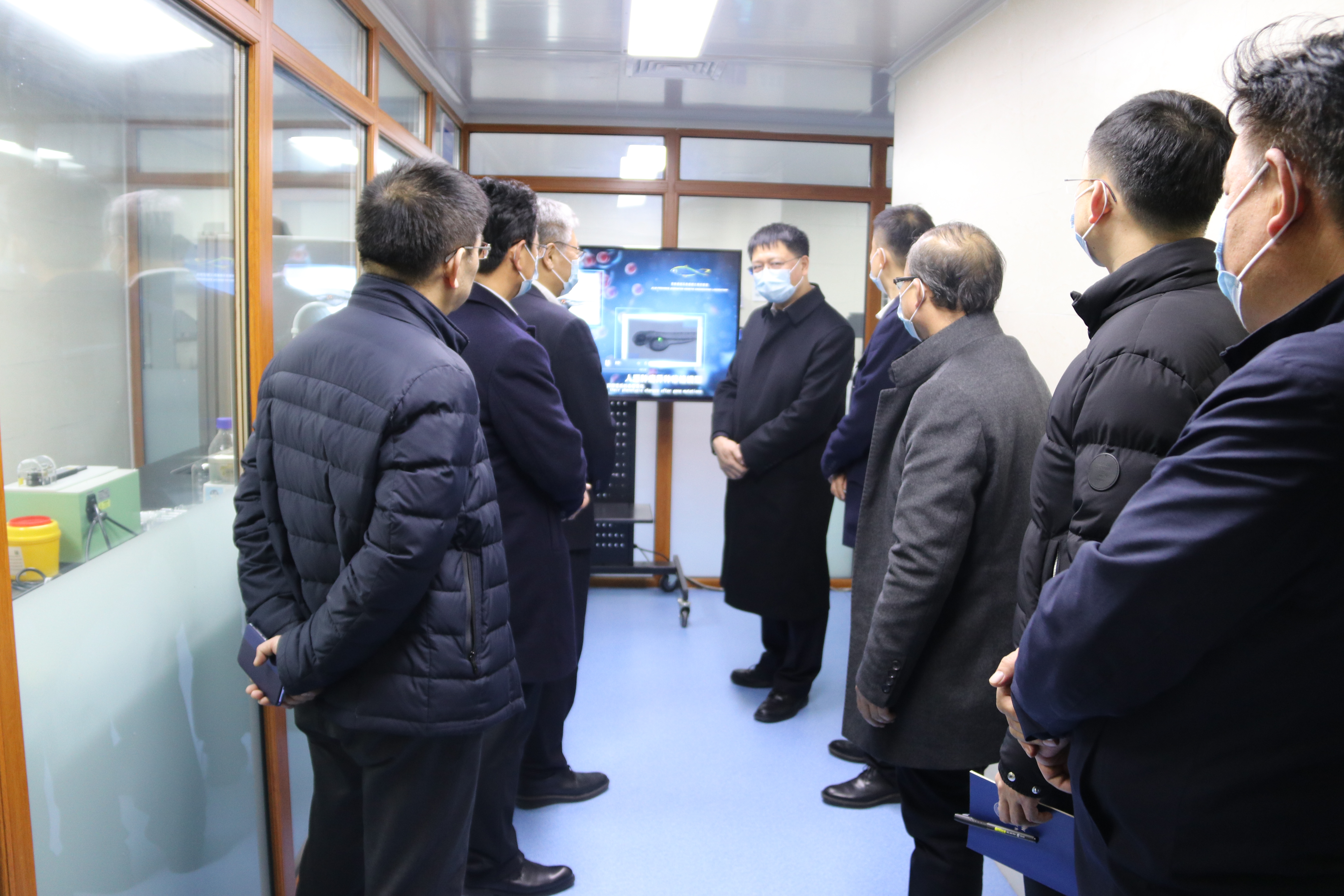 张希校长一行查看了学院的实验教学和实验室安全情况,对学生实验室安全进行了重点检查。张希校长先后来到学院天然药物药效基因分析联合实验室、分子生物学教研室、吉林省斑马鱼基因工程实验室、动物生物安全二级实验观察设施以及病理生物学教育部重点实验室。张希校长详细询问了学院在抗疫期间研发试剂盒的应用范围和使用原理,王放院长对冠状病毒基因检测试剂盒(基因芯片法)及其使用情况给与一一解答,校长对学院为新冠肺炎疫情的防控和治疗做出的突出贡献给与赞许。张希校长表述斑马鱼作为“脊椎类模式动物”在国际上有很大的应用范围,他对学院的斑马鱼工程给与充分肯定并寄予厚望。在与病理生物学教育部重点实验室的教师交谈中,张希校长强调学院一定要将安全放到学生实验教学首位,并逐渐扩大大型实验仪器使用范围,加强大型实验室仪器在本科教学中投入使用。