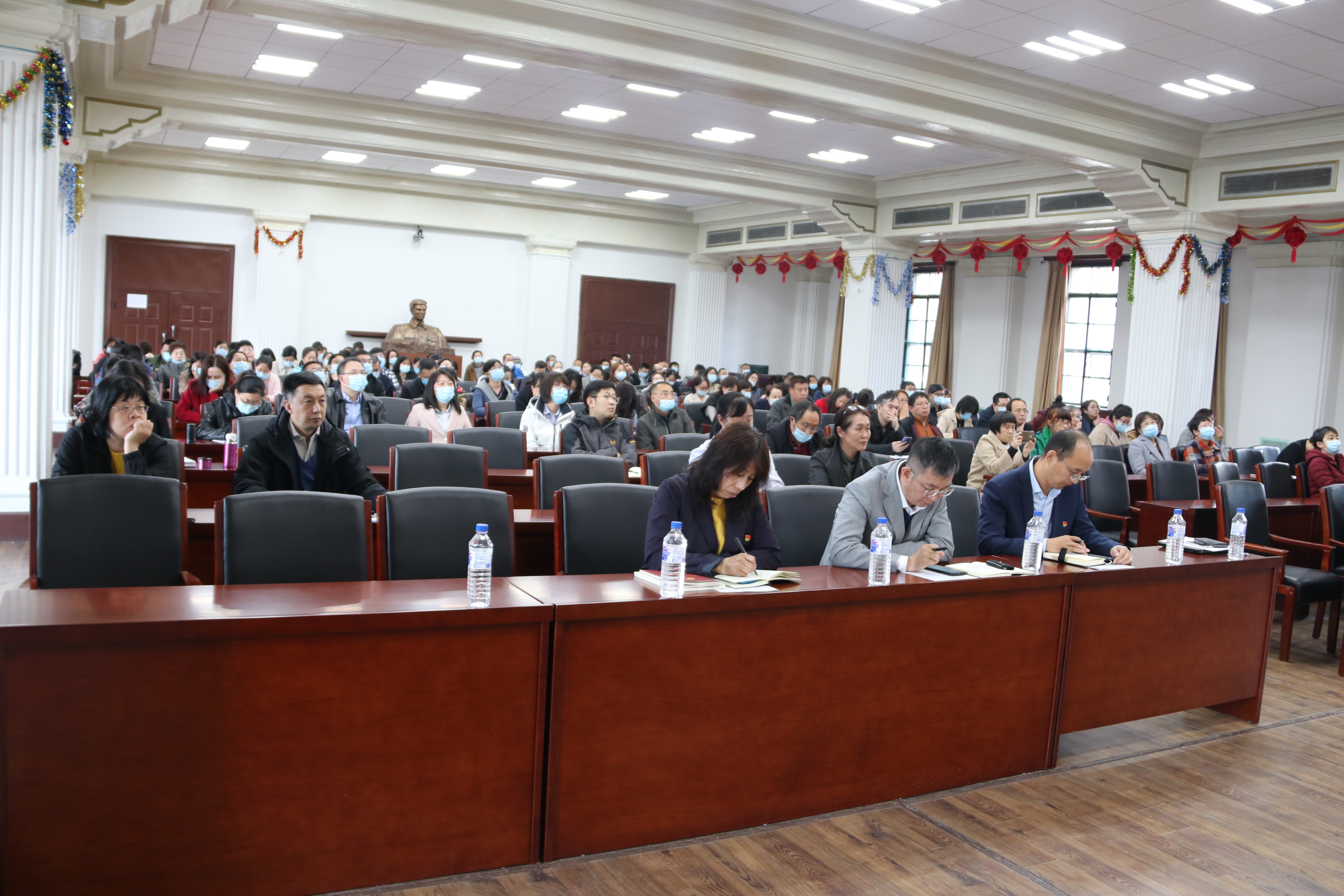 ,对在白求恩精神引领下,学院发展的奋斗历程和众多先贤学者的开创精神进行了学习。之后就十三五期间的工作进行了全面总结,在查找困难与问题的同时,对学院十四五规划的发展思路与举措进行了解读。
