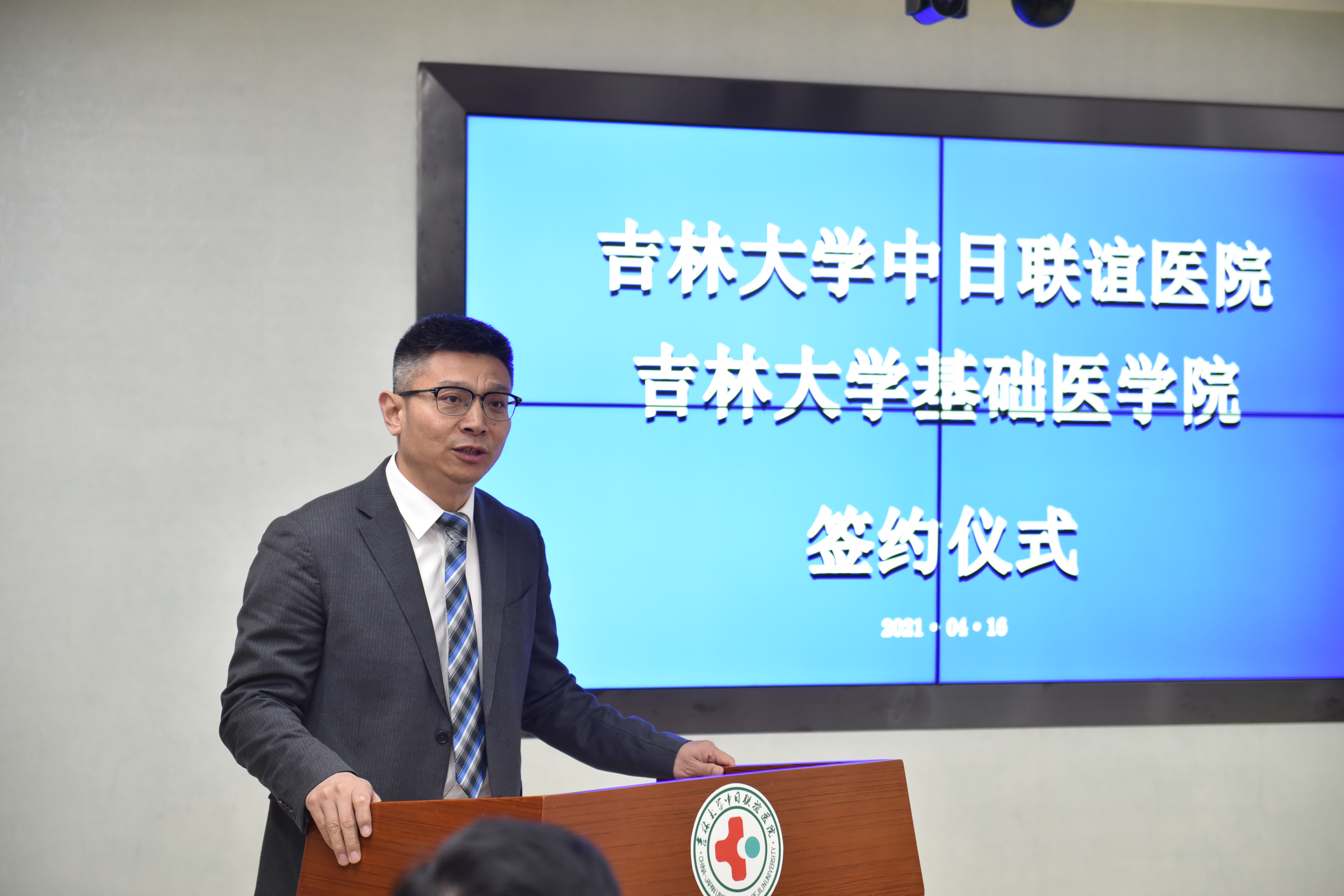 领导班子和专家的到来表示热烈欢迎,在介绍中日联谊医院科研发展相关情况的基础上,提出临床医学与基础医学深度融合是双方发展的重要科研支撑力量,希望双方能够凝聚合力,孵育长期具有重要意义的可持续发展的研究方向,不断加强科研探索与人才培育,携手实现双方共同发展新局面。