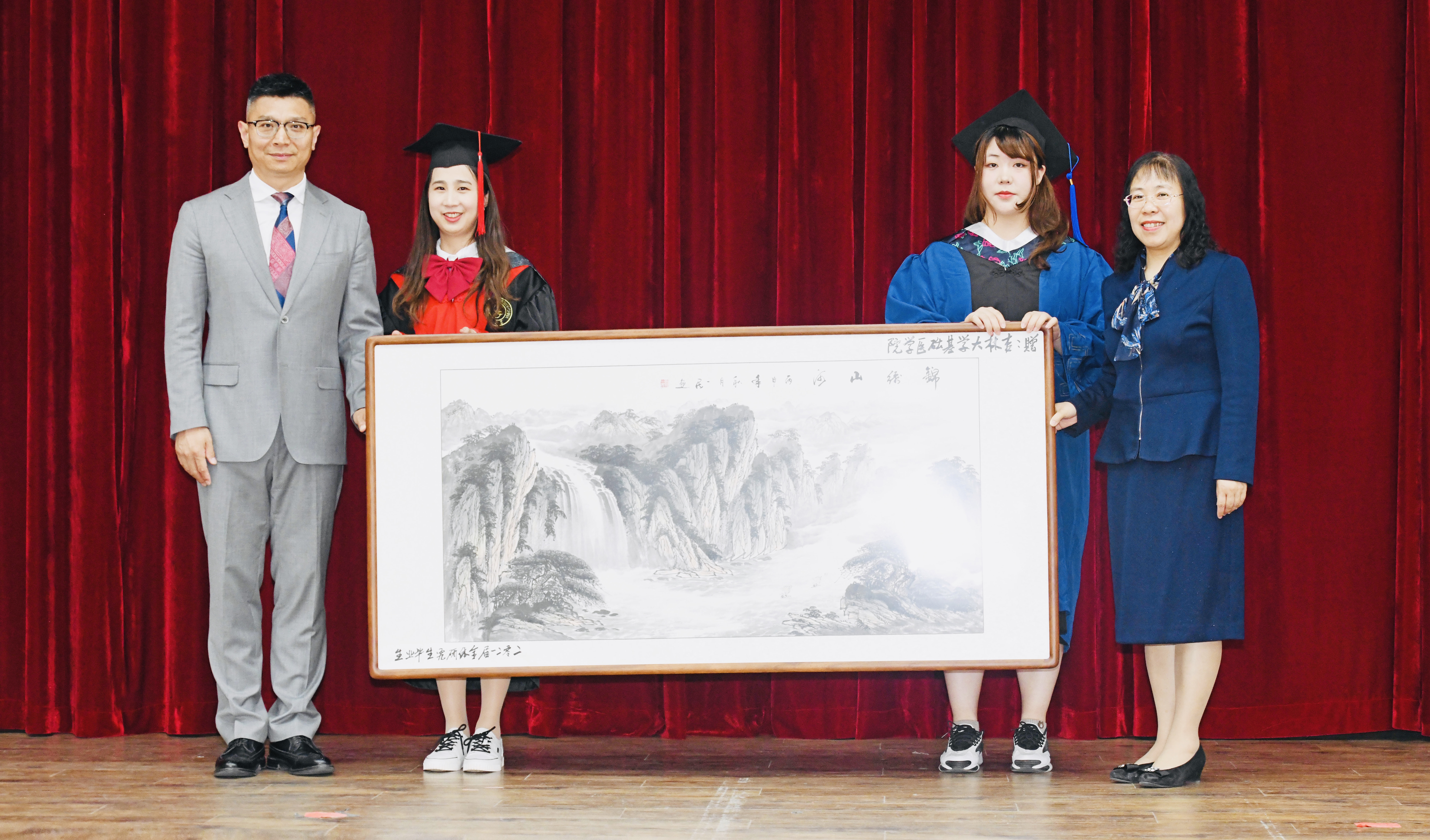 难忘的学习经历,如今将再次启程,铭记母校栽培,砥砺前行。全体毕业生向学院敬赠了一份饱含心意的礼物,学院领导与学生代表亲切合影留念。
