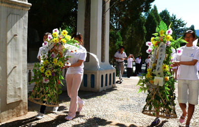 晋察冀烈士陵园位于唐县城西北的军城南关村西,园内苍松翠柏,花果飘香,林墓相间,有著名国际主义战士白求恩、柯棣华的原始陵寝,还有36名八路军县团级以上将士的陵墓,是中国共产党所建的较早烈士陵园之一,是人们缅怀先烈祭奠英灵进行爱国主义教育的基地。小分队在白求恩医学院党委副书记兼副院长苑锐带领下向白求恩墓敬献花蓝,院学生会主席赵宇昊代表全体学生发言,表达了继承白求恩遗志,弘扬白求恩精神的坚定决心。全体成员向白求恩像宣誓,郑重承诺——恪守医德,救死扶伤,时刻准备着为祖国医药卫生事业奉献自己的全部力量。小分队还向柯棣华墓、付莱墓、琼•尤恩墓敬献了花圈。