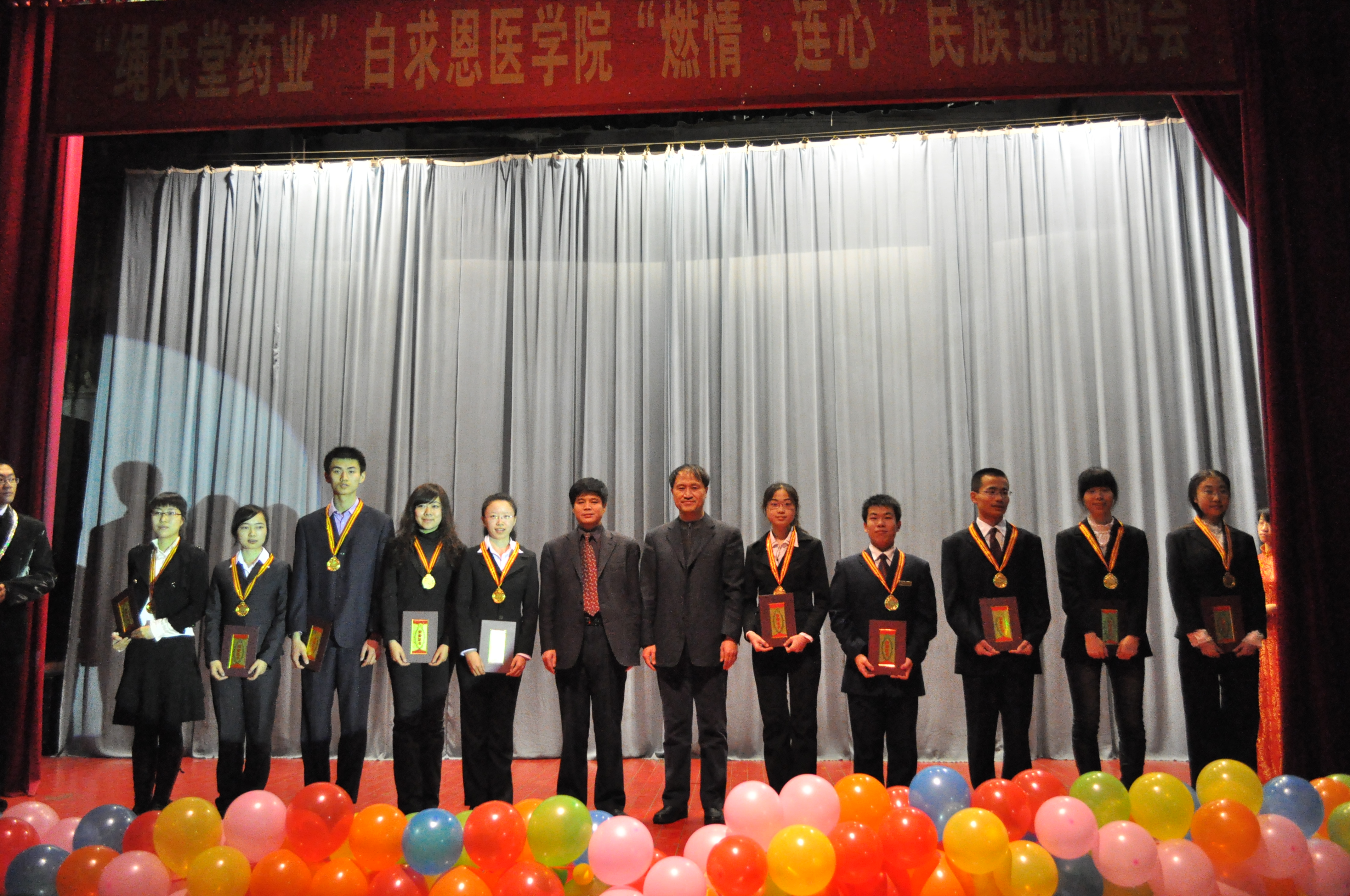 晚会期间,举行了白求恩医学院首届“白求恩十佳大学生”颁奖仪式,学院党委书记屈英和、副院长程丕显为“白求恩十佳大学生”颁发了奖牌和证书。
