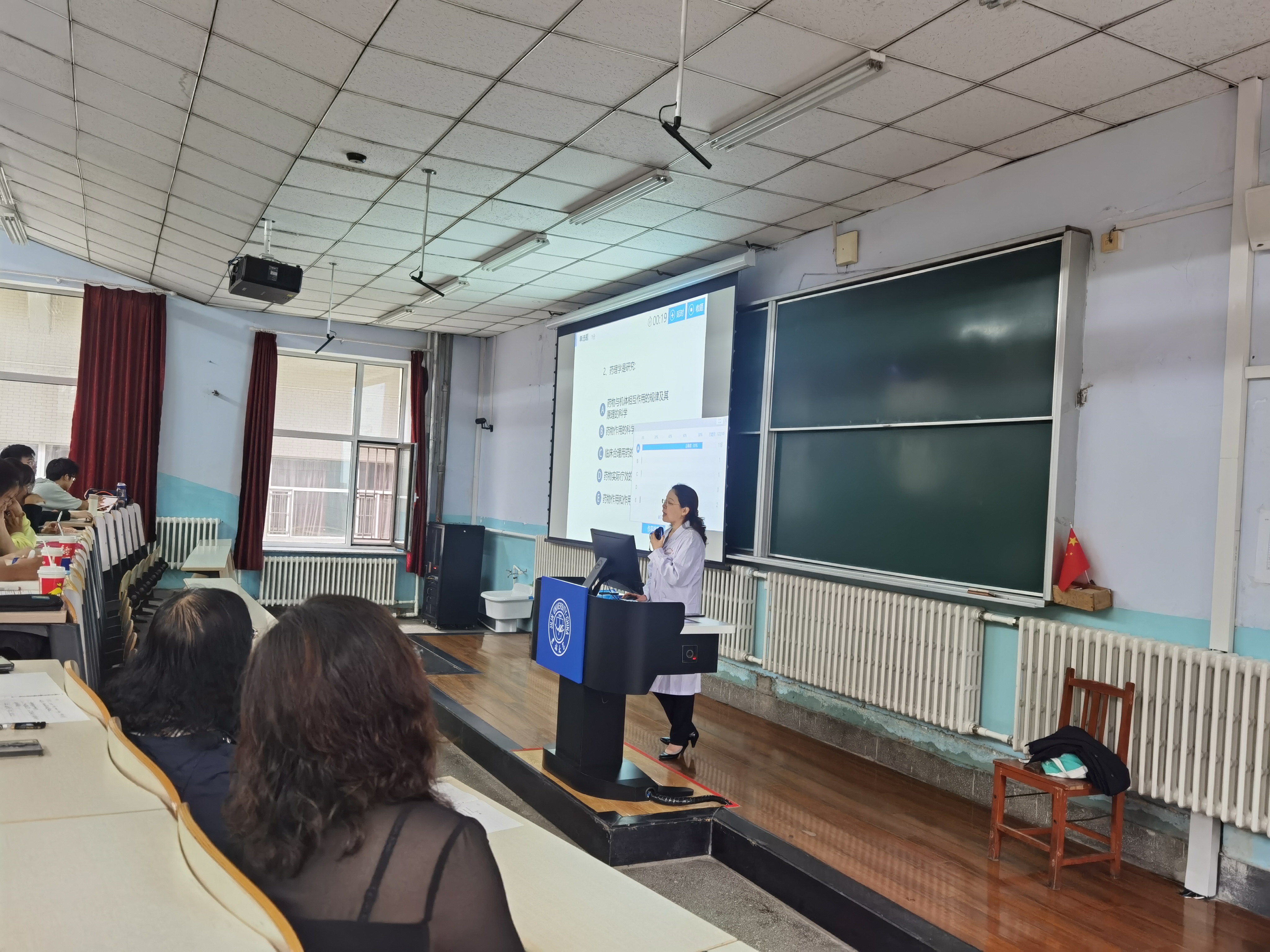 药理学系关凤英老师利用线上线下混合式教学模式讲授《药理学》总论,课堂导入自然流畅,授课内容生动精彩、重点突出;同学们出勤良好,认真听讲,与老师积极互动,课堂气氛活跃;学院领导做了详细的听课记录,对关老师的教学设计与内容、教学方法与手段、教学技能和教学效果给予了充分肯定。