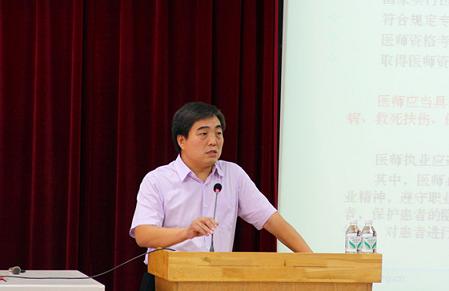临床医学、口腔医学、预防医学的学生执业医师考试情况,并对一些具体问题进行深入探讨。最后,王县成对管理人员、教师及学生提出的具体问题进行了详细解答。报告会得到了师生普遍好评。