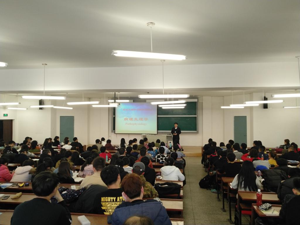 在新民校区第一教学楼201教室,孙连坤教授正在为2016级医学五年制第一教学班同学上第一堂病理生理学课。课堂上,孙教授为同学们介绍了病理生理学的性质、特点、主要内容等问题,讲解了人类疾病的病因、发病机制及转归,课堂气氛活跃。课间,学生纷纷走到讲台与孙教授沟通学习情况。学生们表示非常喜欢孙教授的讲授,通过老师幽默的语言、讲授中熟悉的生活实例,明晰了医学学科前沿及发展趋势,领会了老师重在传授医学专业基础课的学习方法,“授人以渔”,明白学医者应富含人文关怀,启发自己做好个人学业规划及职业规划。