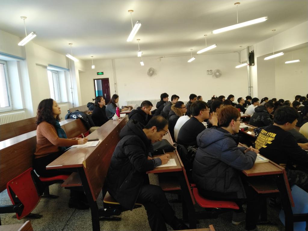 为加强学院教学质量监控,推进教风建设,2018年3月5日,开学第一天,院党委书记郑爽、副院长李洪岩及教务办公室全体人员深入课堂听课。
