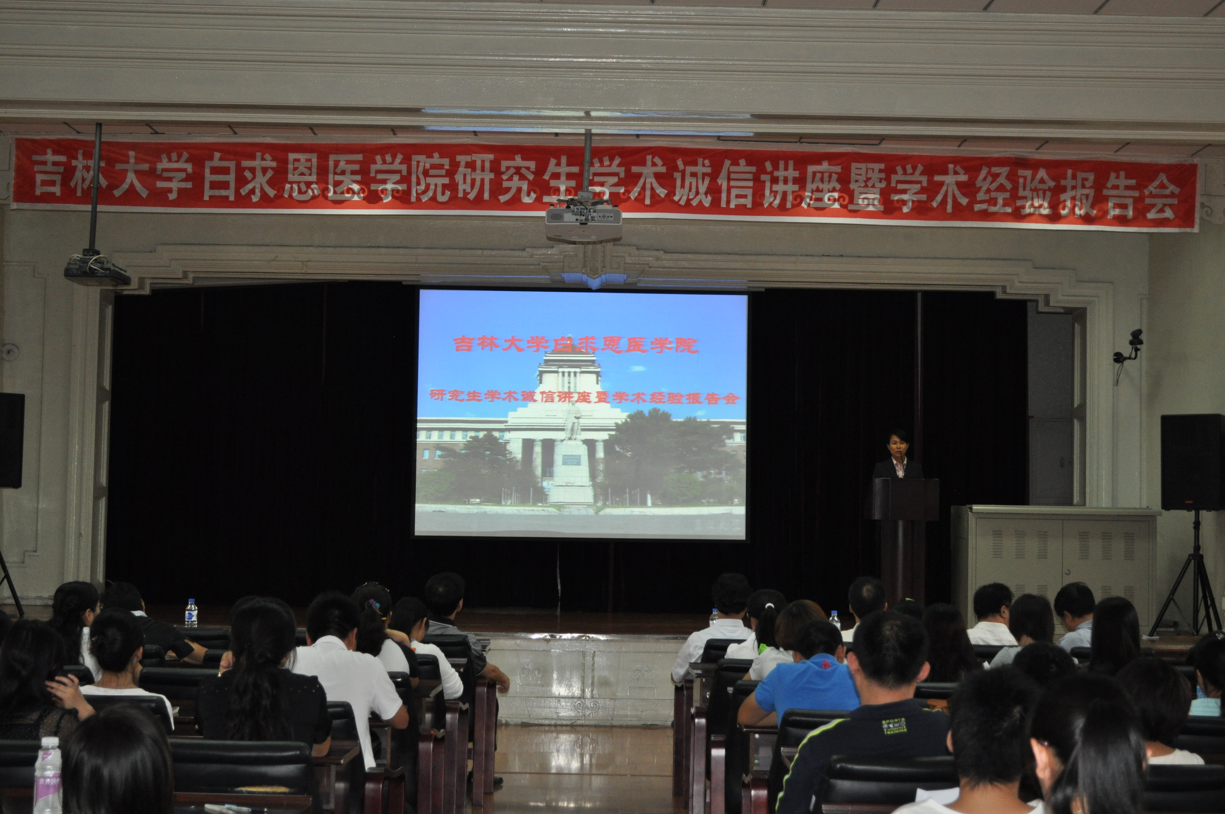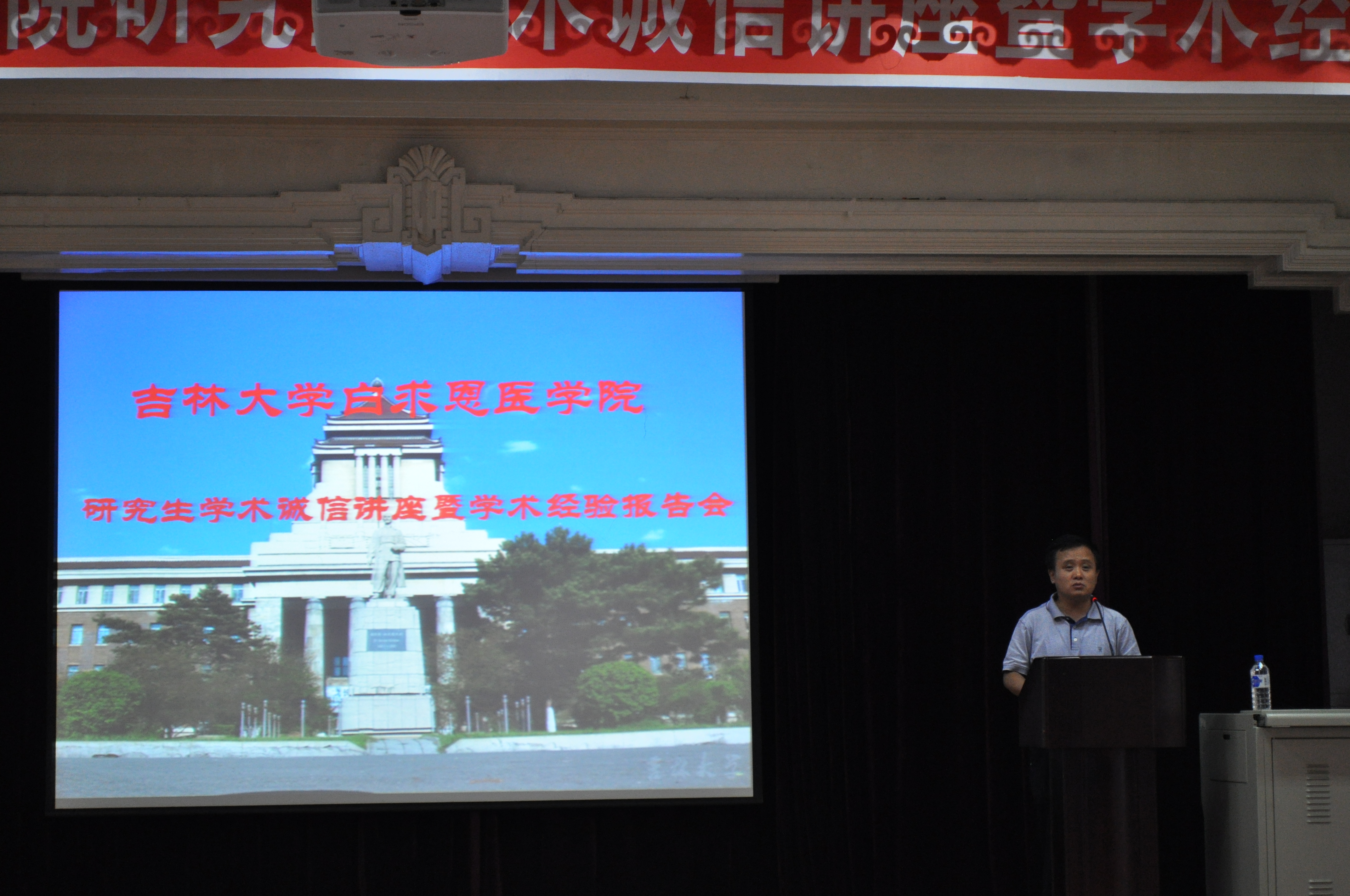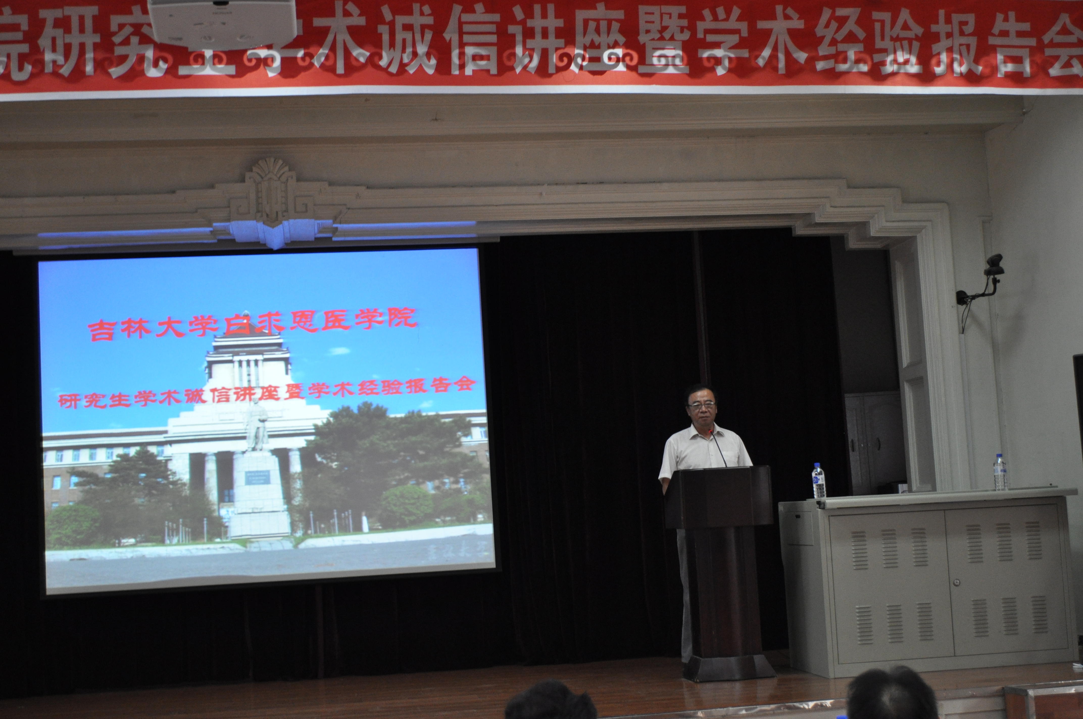 常务副校长、白求恩医学院院长李玉林教授强调了学术诚信的重要意义,希望研究生从自身做起,多向导师和师兄师姐学习经验,坚定学术诚信,不能做违反职业道德的事情,以白求恩为榜样,精益求精做科研、做学问。随后,李桐忠老师通过详实的案例分析,阐述了学术不端行为产生的严重影响和不良后果,并重点强调了有关学术诚信的文件。希望广大研究生诚实做人,勤奋做事,成为国家的栋梁之才。之后,孙连坤教授从院领导和导师角度出发,语重心长的对广大研究生提出了严格的要求,并希望同学们认真钻研,认真积累,正确处理好理想与现实的关系,提高个人的综合素质,争取成为真正的研究型人才。最后,李一雷教授在严谨学术和严格训练,学会工作,规划人生三方面对广大研究生提出希望,并给予具体指导。