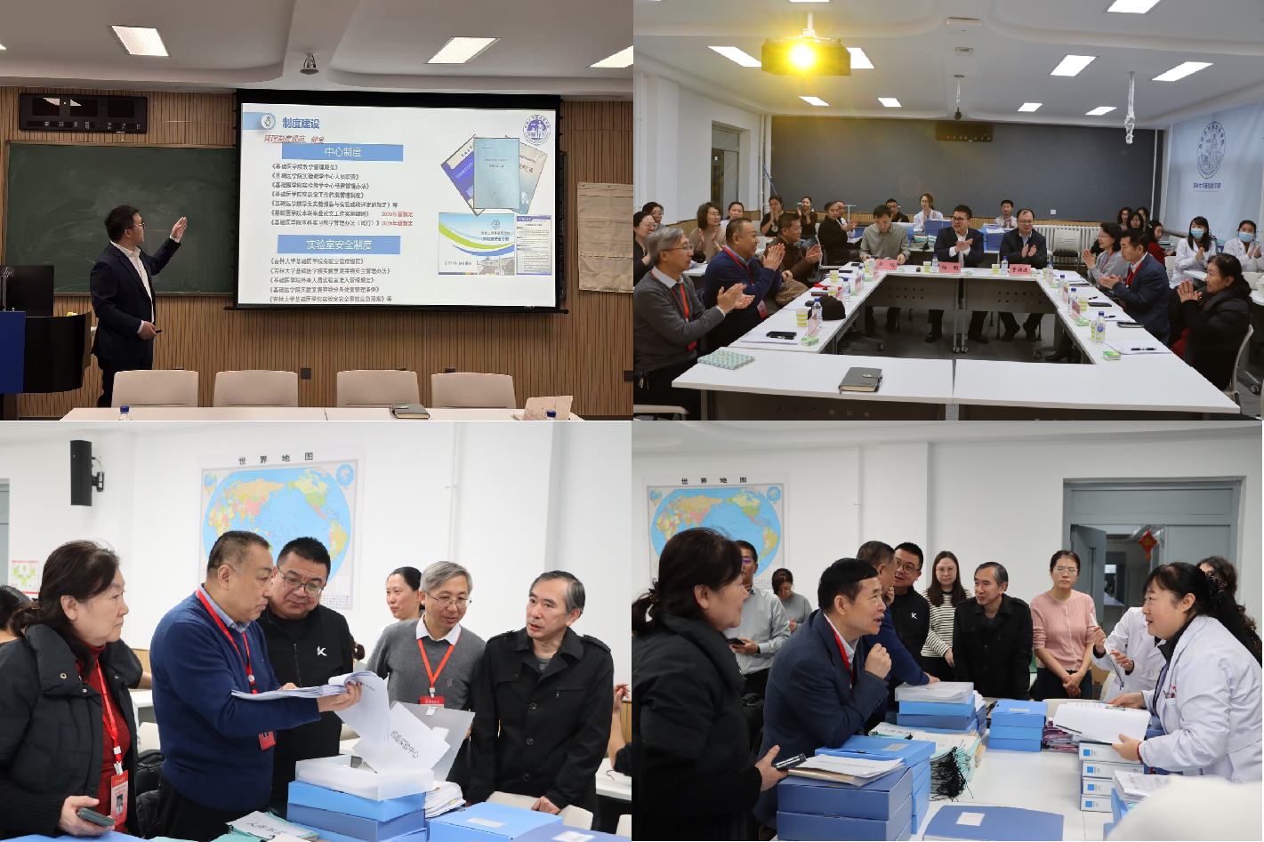 副院长杨明从管理与运行机制、教学研究与人才培养、教学条件保障、示范引领成效、存在问题及工作规划等方面系统汇报了学院实践教学工作开展情况。随后,专家组与学院各实验室负责人、教师代表、实验技术人员及学生代表进行了深入座谈。座谈会聚焦严谨科学态度养成、实验动物关爱、科学伦理教育、课程思政融入等议题,专家组认真听取了师生在实验课程设置、教学资源利用、安全保障措施、教学效果反馈等方面的意见和建议。